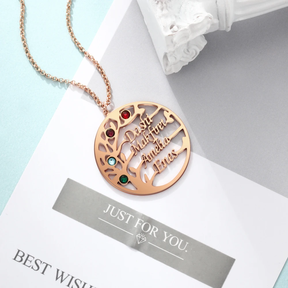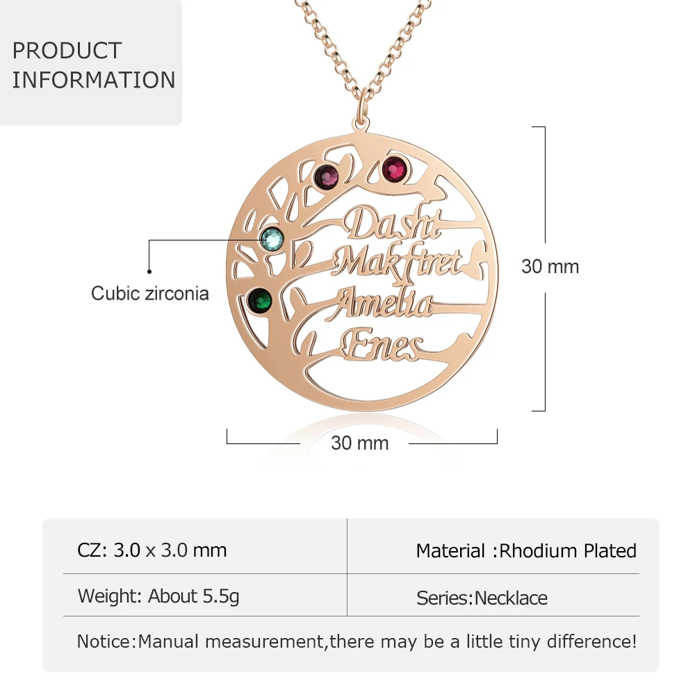 Индивидуальные 4 камня на шею Древо жизни Круглые Подвески Семейные цепочки с кулонами с именами подарок для матери и дочери USD 4,85Долларов США/шт