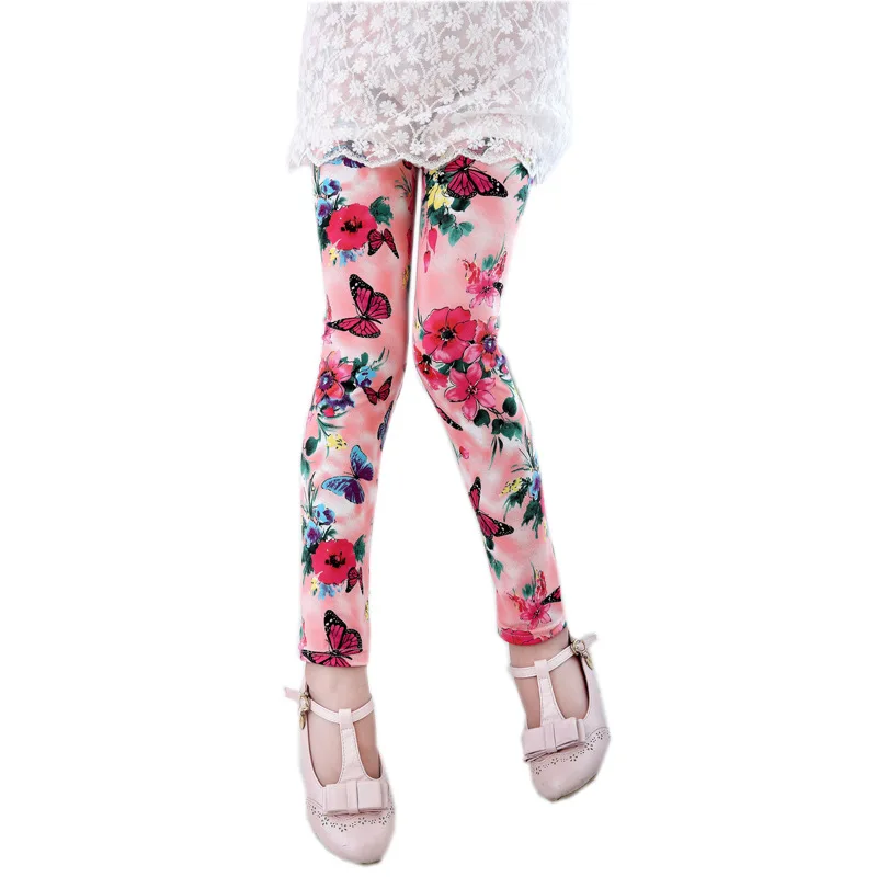 2022 детские леггинсы, одежда для маленьких девочек, узкие брюки с цветочным принтом, Детские хлопковые брюки-карандаш, леггинсы для девочек
