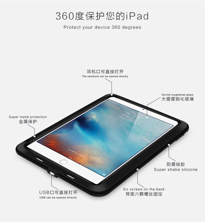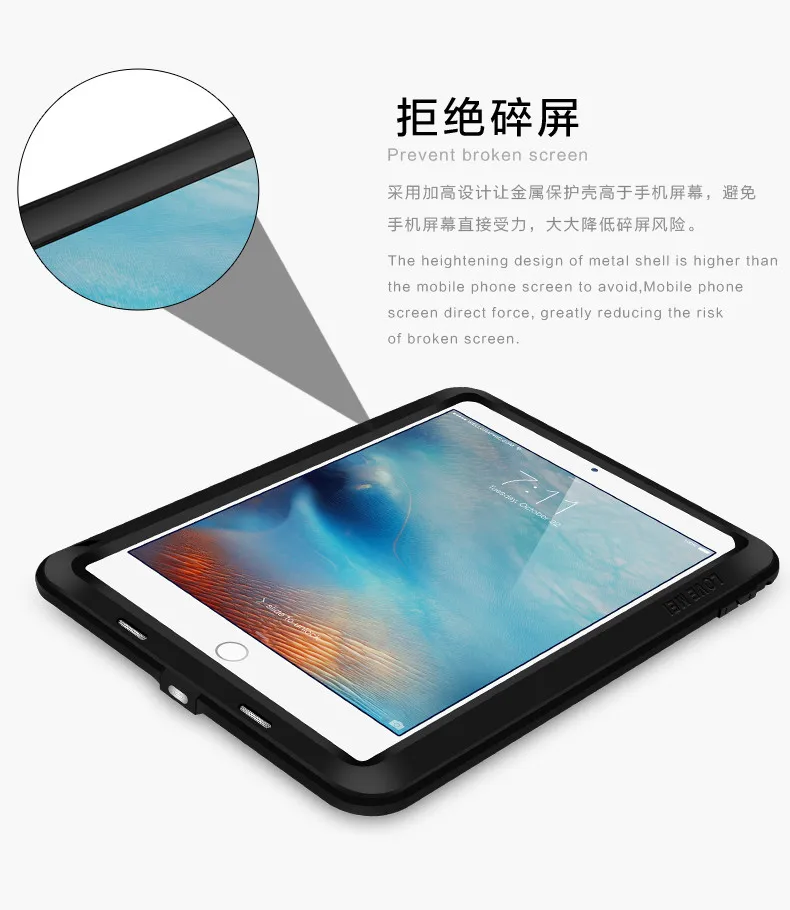 Мощный ударопрочный алюминиевый чехол для Apple iPad AirAir 2Mini 23456, чехол с тяжелым закаленным стеклом Gorilla