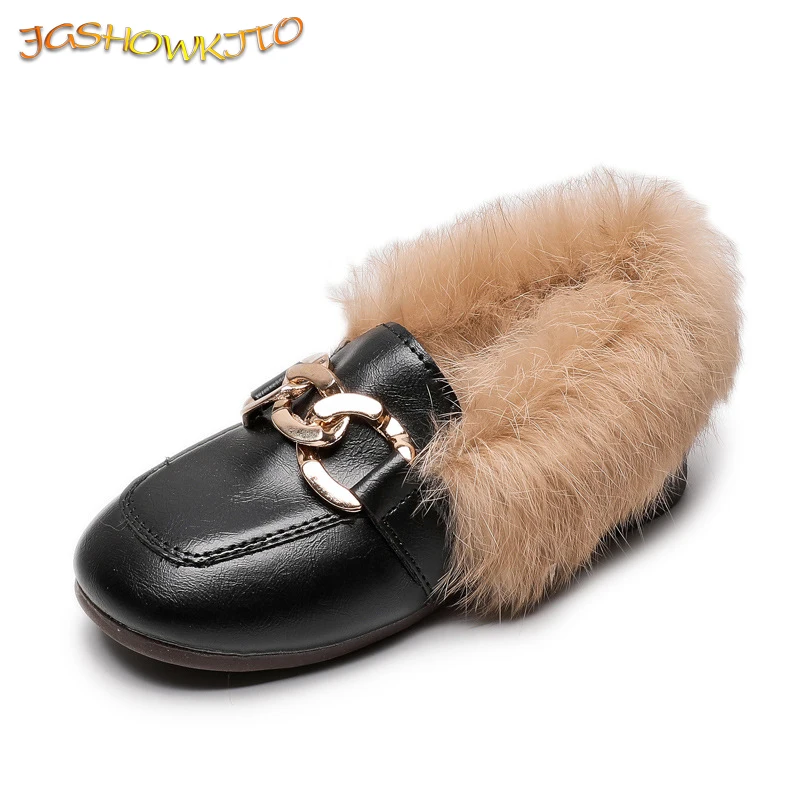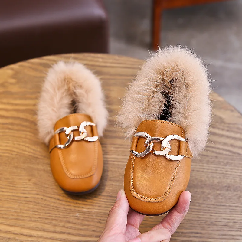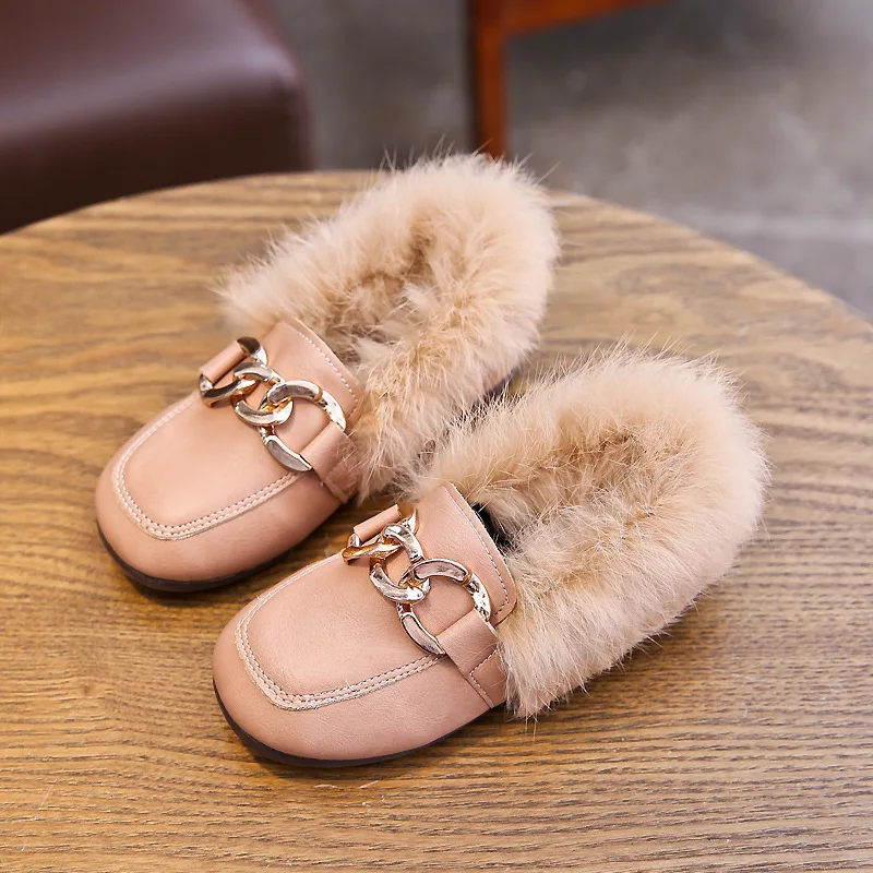 Лоферы JGSHOWKITO Детские Зимние из хлопка, с металлическими цепочками