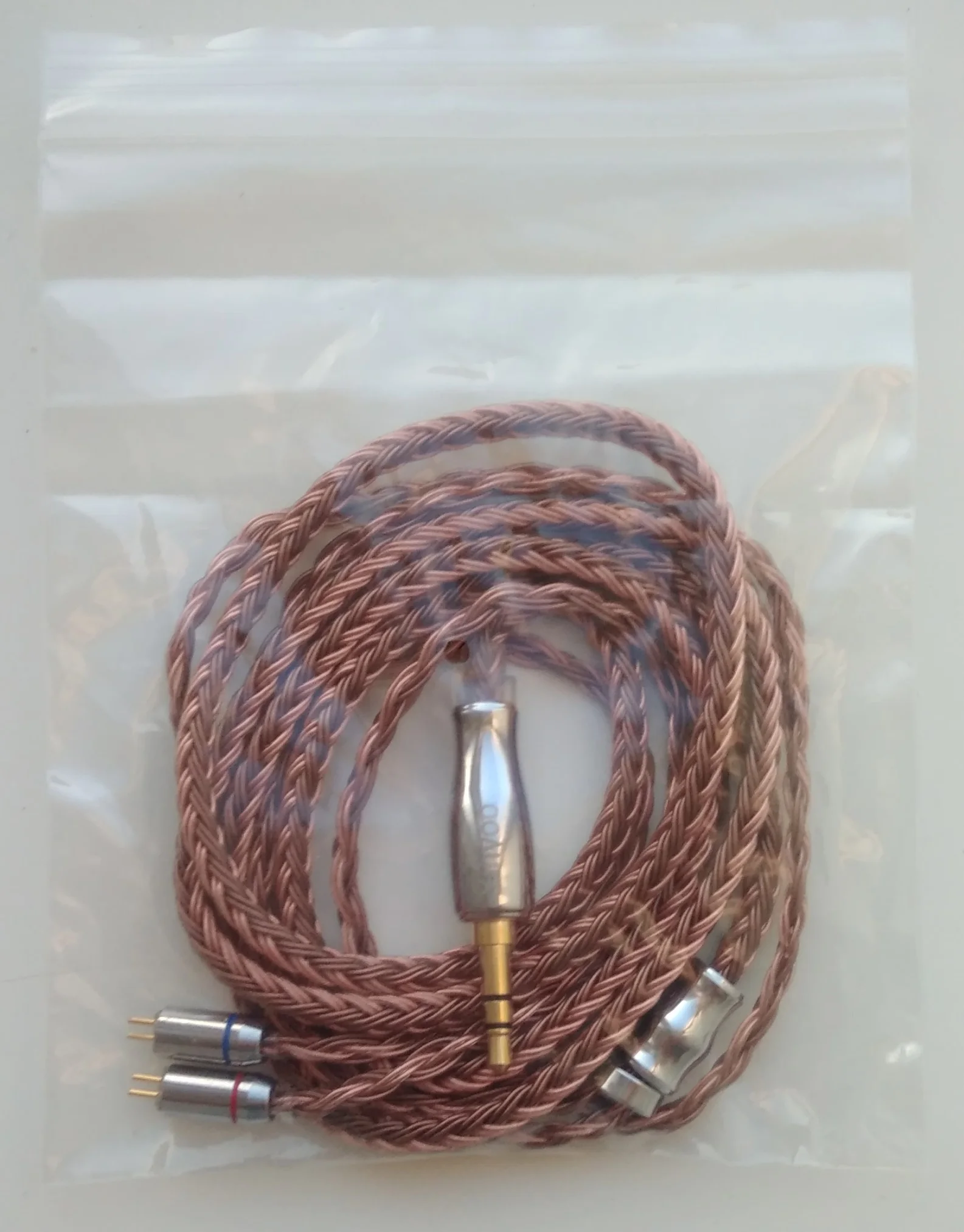 Пришел за 10 дней в пакете с пупыркой, в пластиковом зип-пакете без прочей информации и т.п. - только канат. Канат отличный - мягкий, прочный, многожильный, красивый. Все работает как надо. Покупал их к BGVP VG4 - звук изменился в приятную сторону (как по мне): стал посвободнее, не таким острым, и главное сцена стала невообразимо широкой и приятной. Спасибо продавцу за кабель - очень доволен!