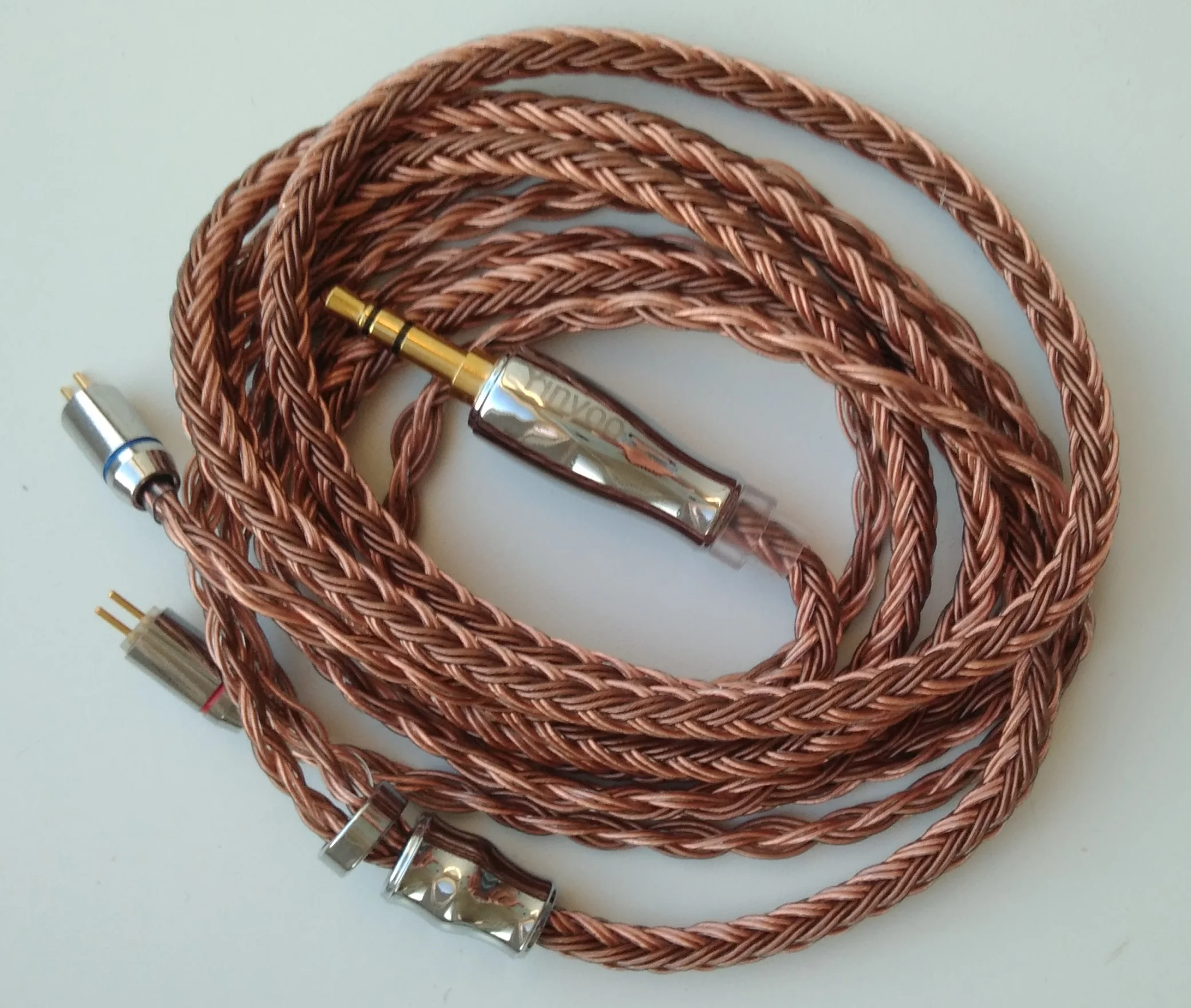 Брал для наушников BLON BL-03, все подошло. Провод мягкий, легко запутывается.