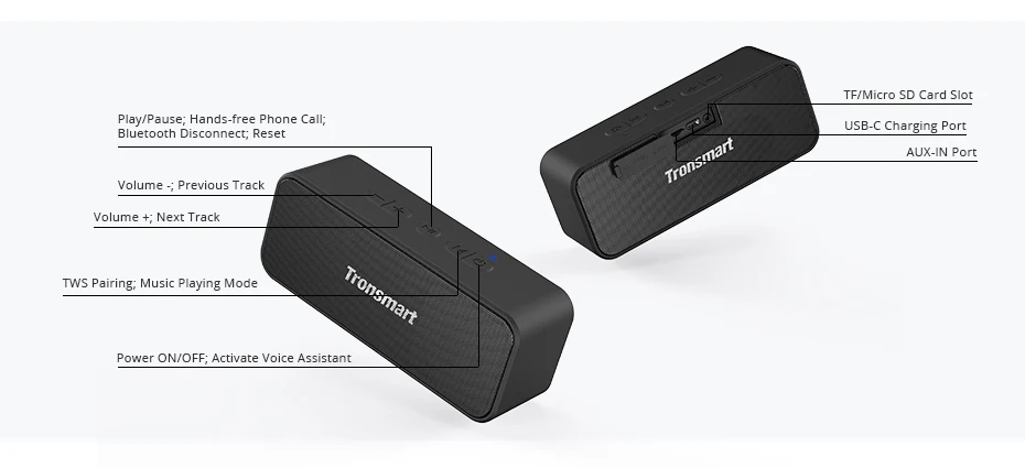 Bluetooth-динамик Tronsmart T2 Plus, Bluetooth 5,0, Портативная колонка 20 Вт, IPX7, голосовой помощник