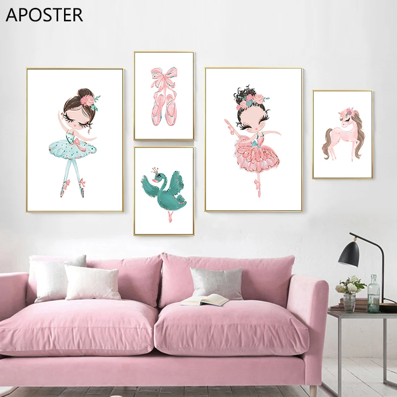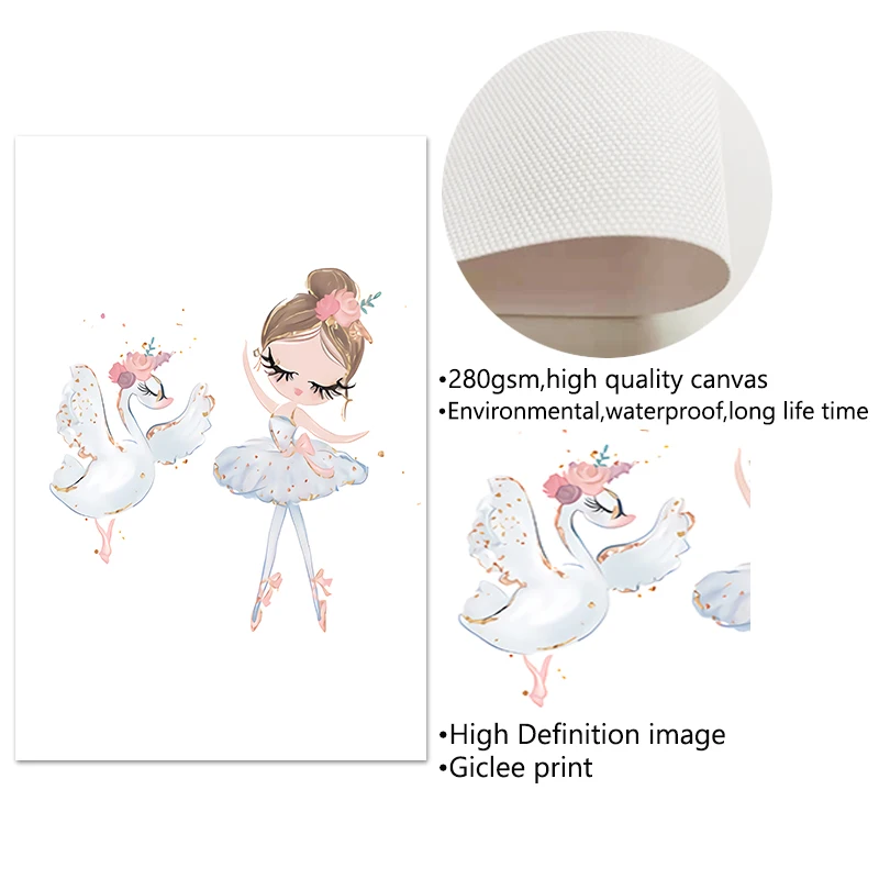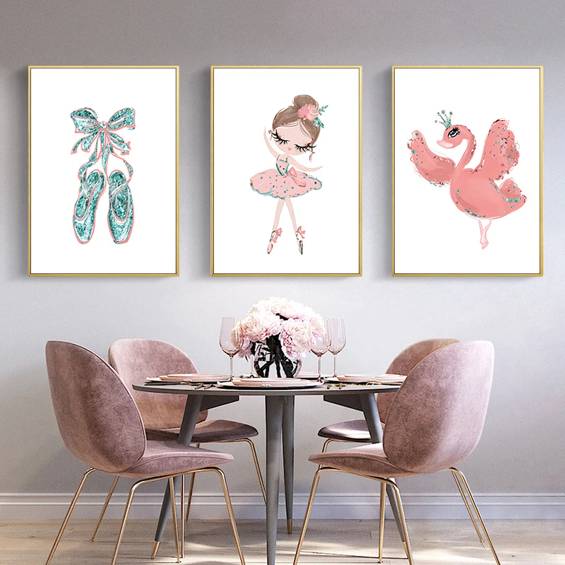 Балетная принцесса, детский постер в скандинавском стиле, настенная живопись на холсте с изображением лебедя, настенные картины с принтами для детской комнаты, Декор