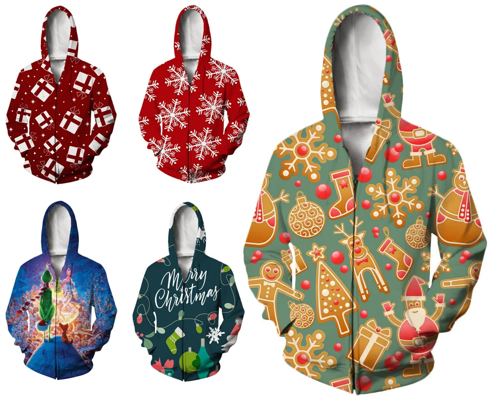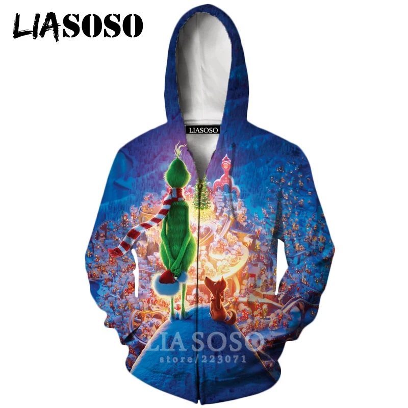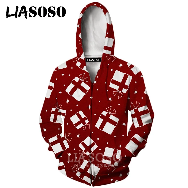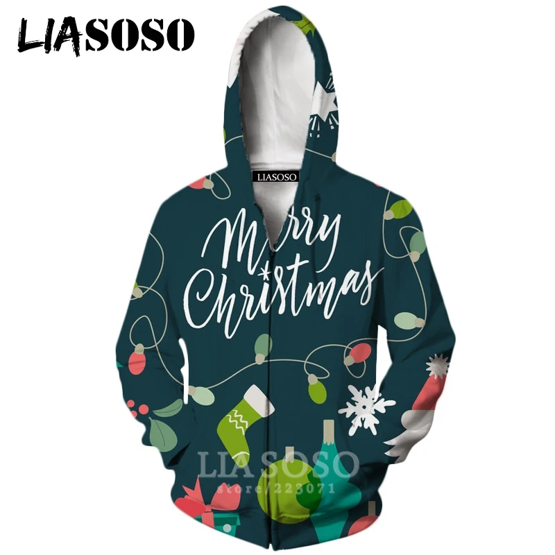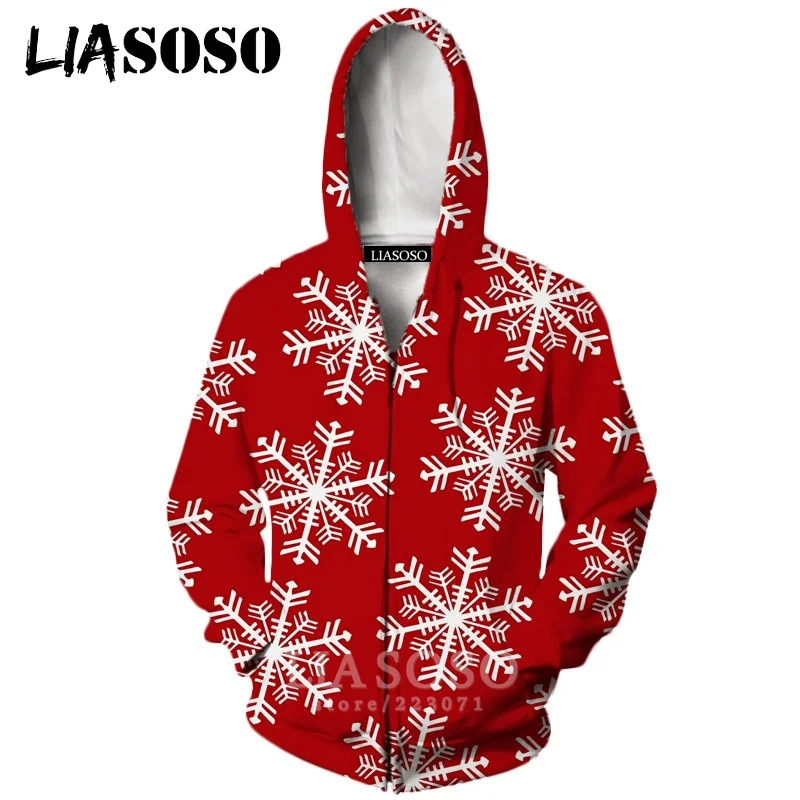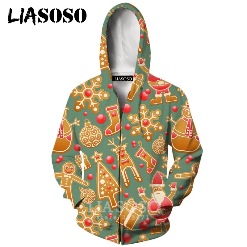 LIASOSOНовые мужские и женские толстовки со снежинками с 3D принтом рождественского оленя, печенья на молнии, толстовки в стиле хип-хоп, уличный Топ, пальто с круглым вырезом, A307-2