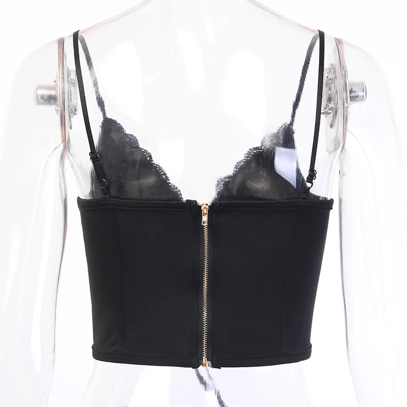 Женская майка на тонких бретелях InsGoth, кружевная, Черная