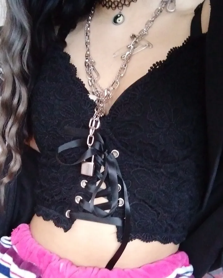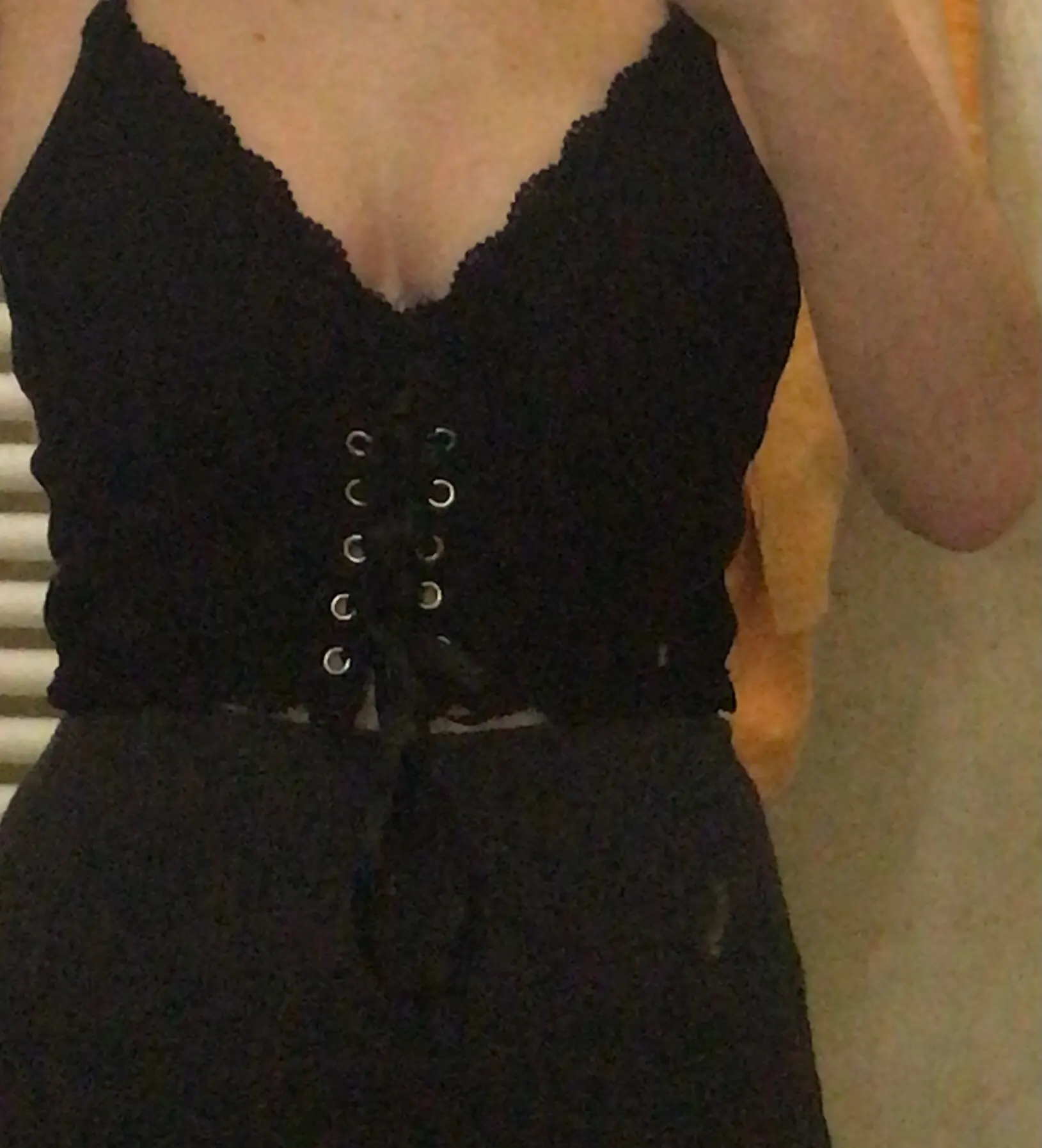 Выглядит так же, как на фото, но я получил самый большой размер, и моя грудь все еще слишком большая для него, но я всегда могу носить что-то милое под.