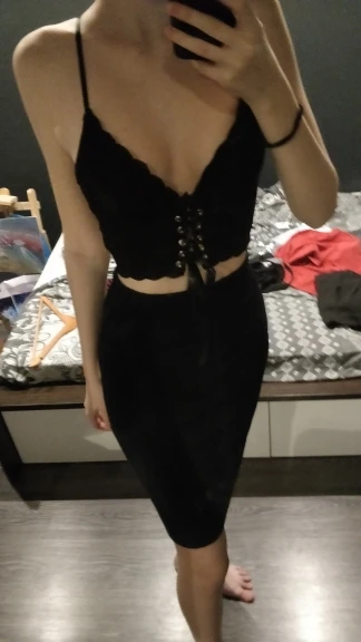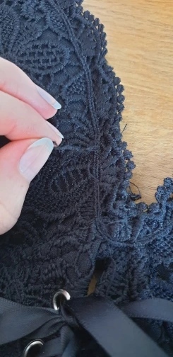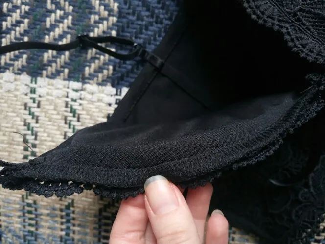было бы неплохо, если бы в нем была поддержка для груди +сбоку больше ткани. а то у меня хоть и не очень большая грудь, но треугольнички маловаты. мб если пришить тоннельку и какое кружево, будет совсем хорошо. а так ткань хорошая, кружево тоже, красиво, все как на фото. пришло быстро, за две недели до Саратова