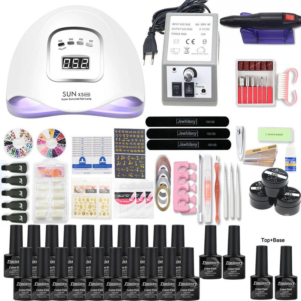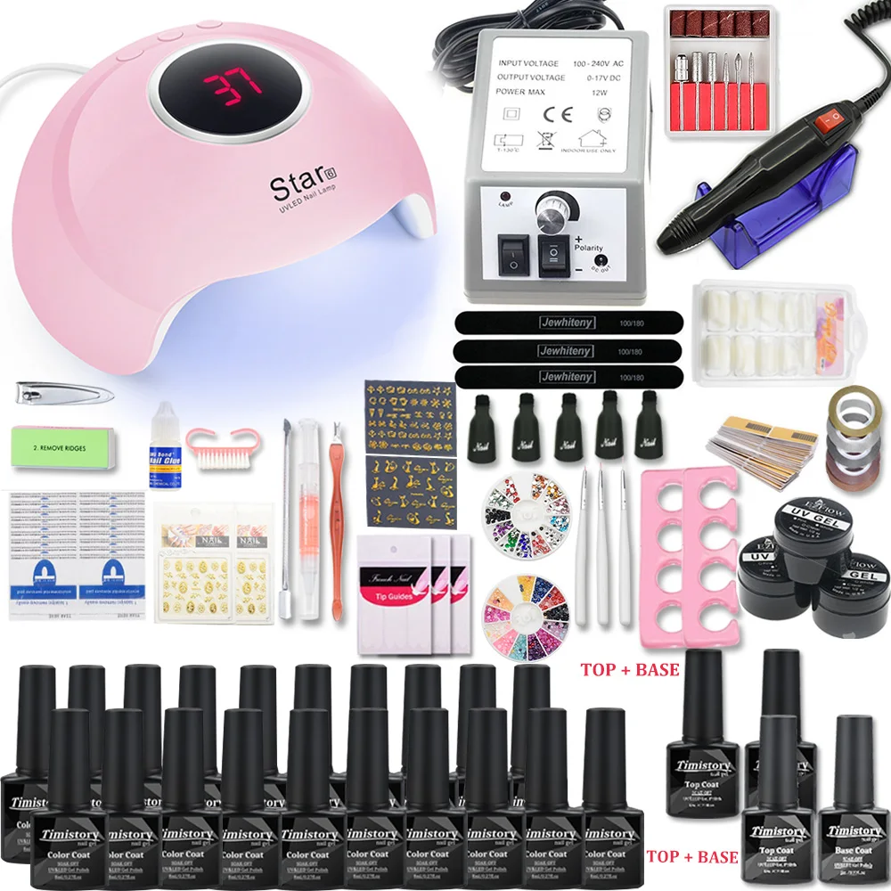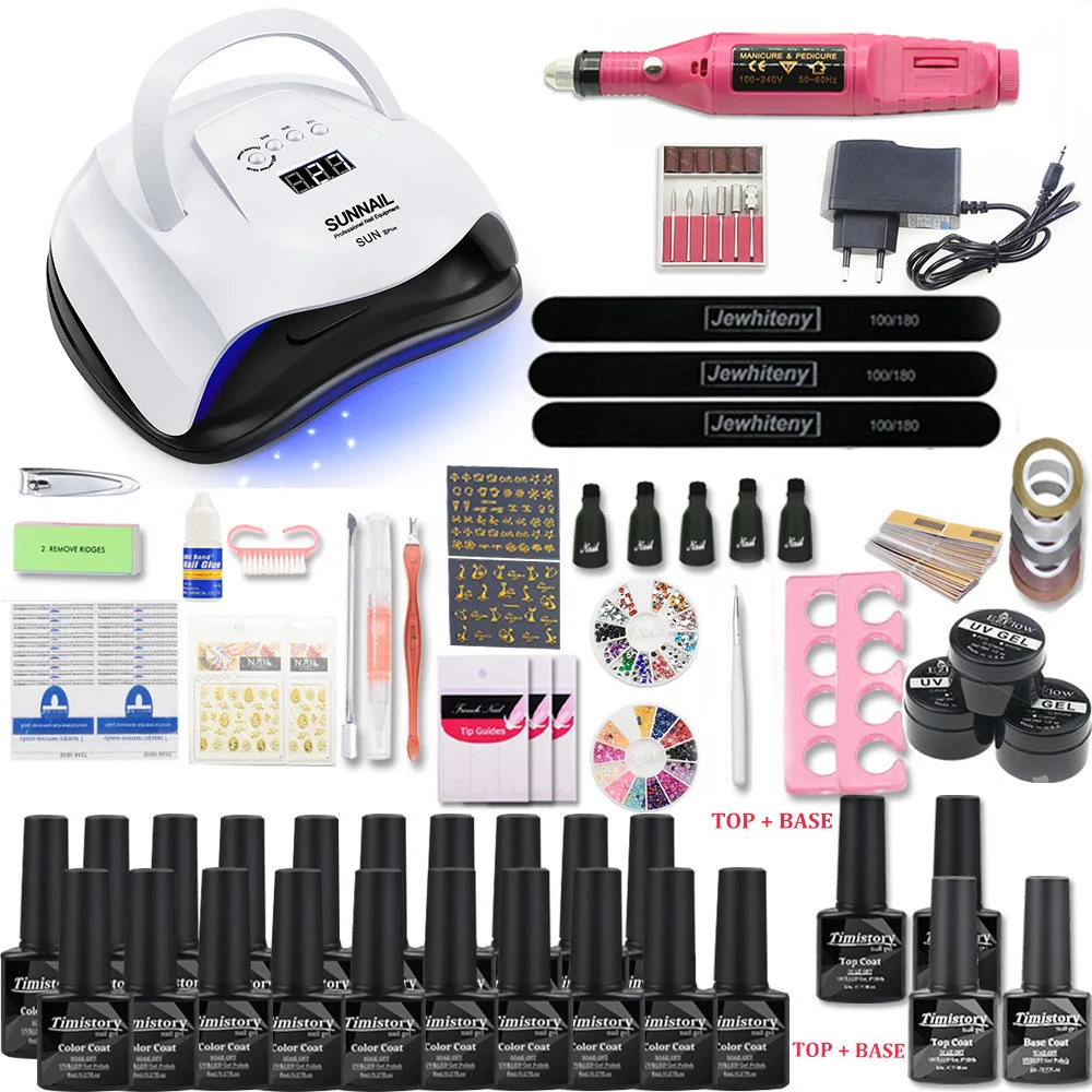 Набор для маникюра, 20 видов, со скоростью вращения 20000 об.мин, лампа для ногтей, набор для дизайна ногтей