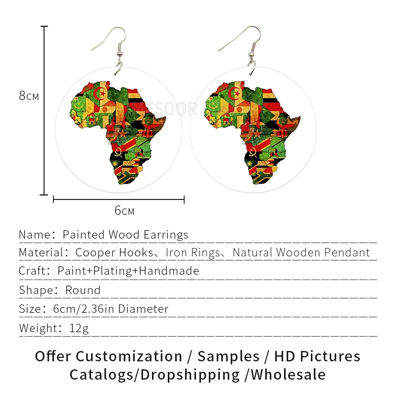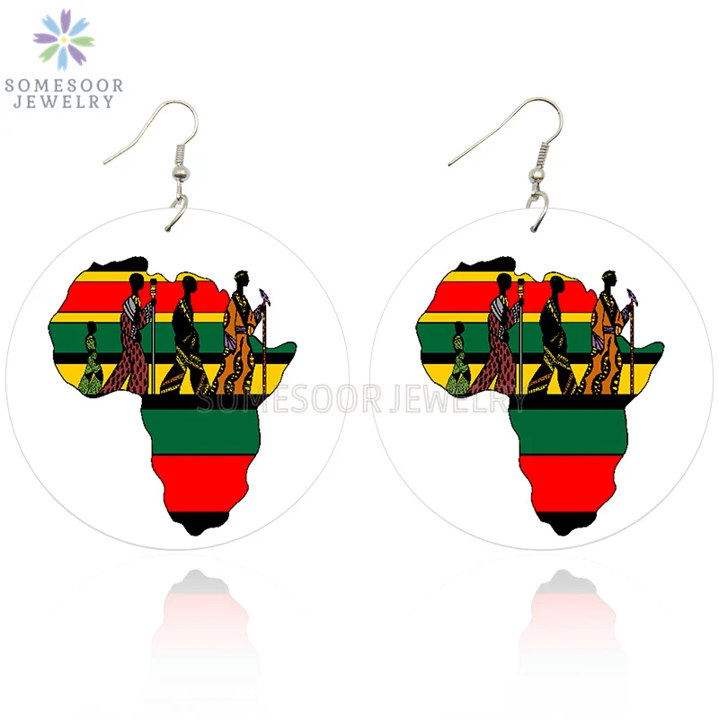 Женские деревянные серьги SOMESOOR, в стиле хип-хоп, с изображением флагов африканских стран