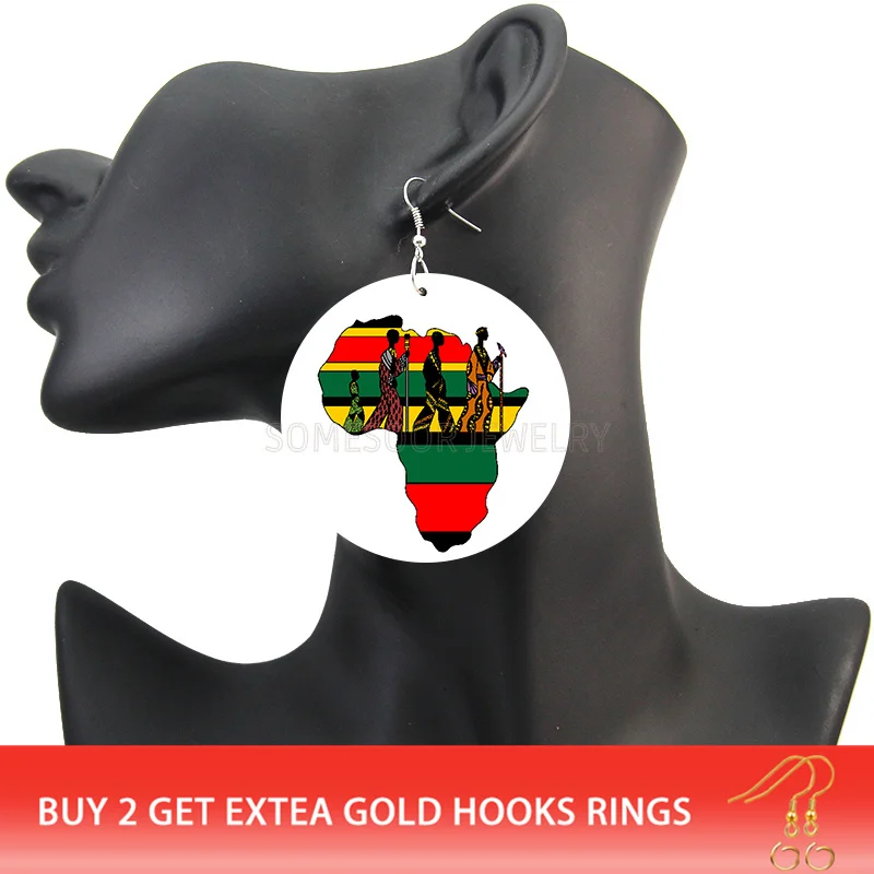 SOMESOOR лазерная гравировка афро деревянные висячие серьги Африкан...