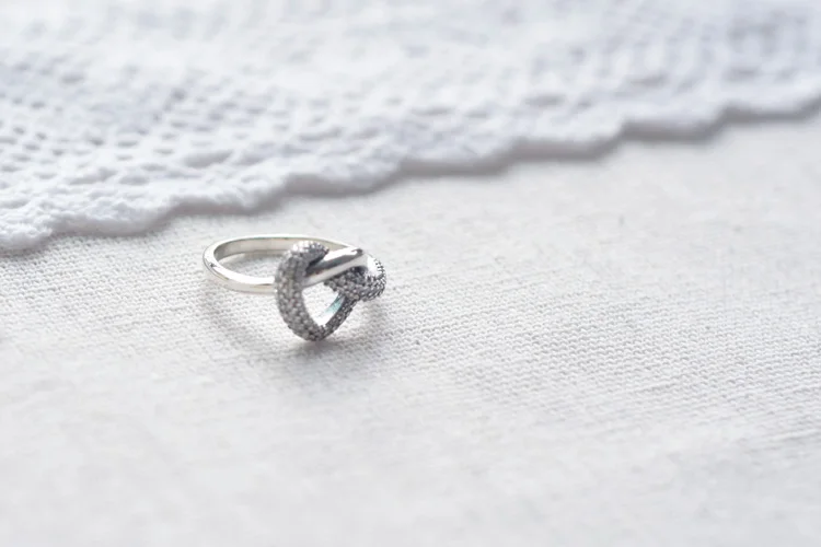 Кольцо женское из серебра 925 пробы с узелком в вечерние сердца