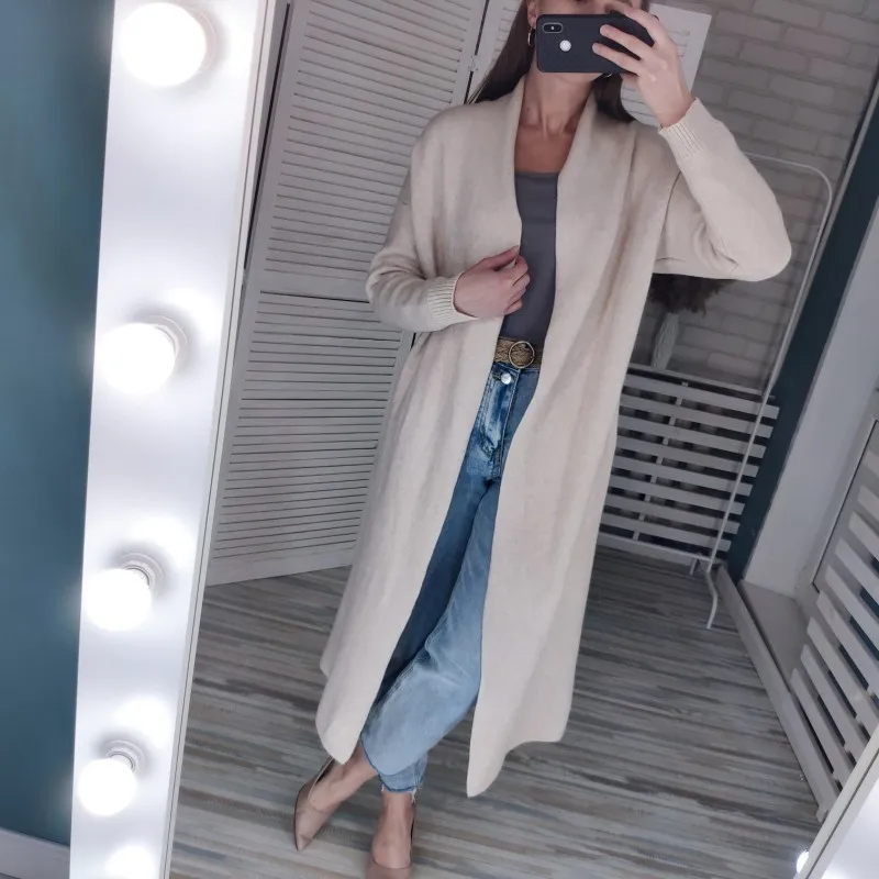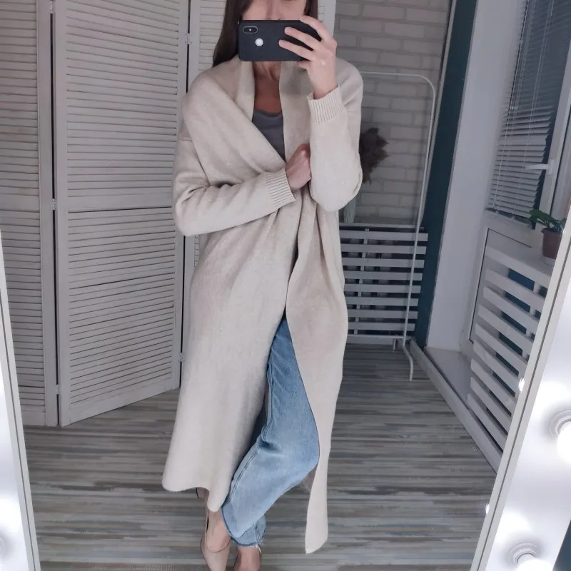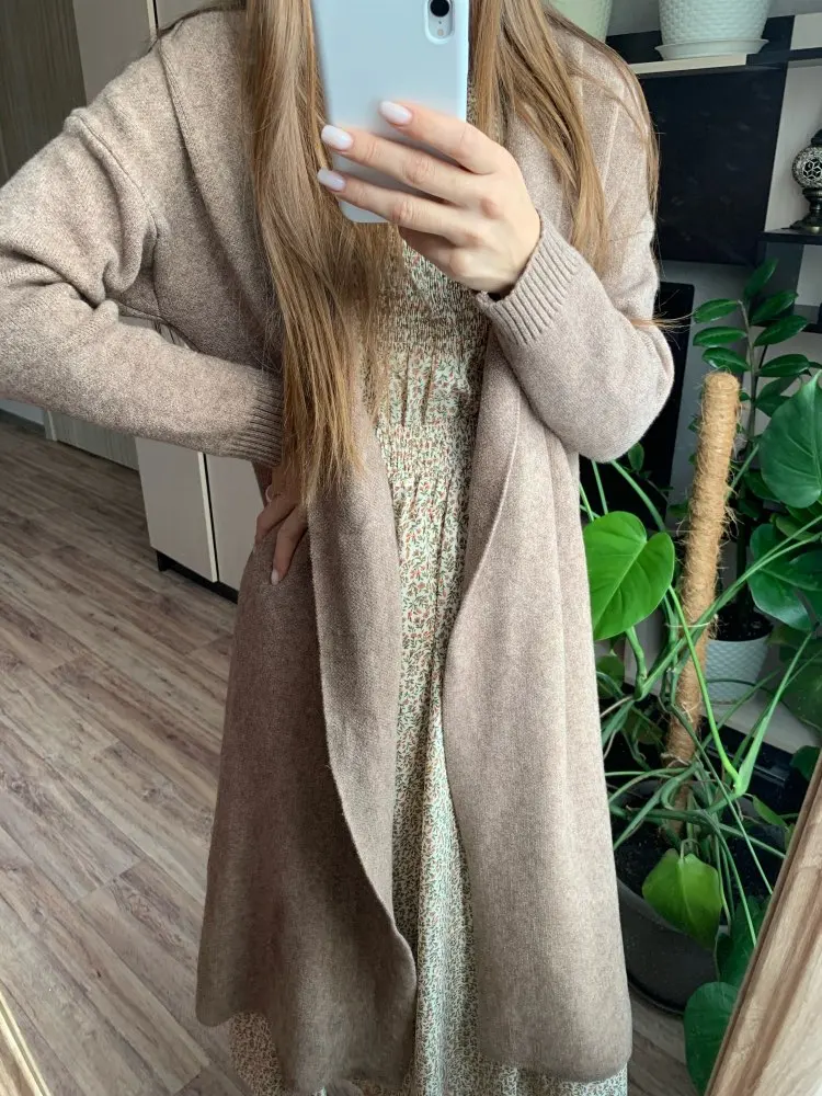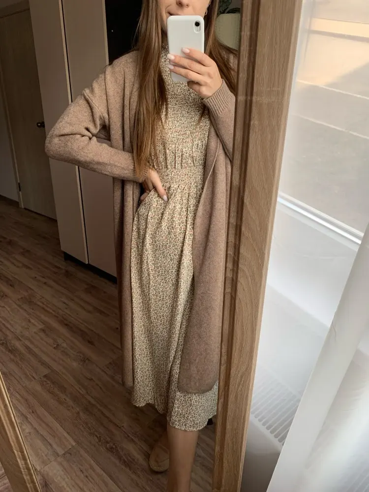 Уютный кардиган Единый размер. В принципе, он универсален за счёт кроя. Подойдёт девочкам и больше и меньше меня. (У меня 42-й российский размер и 36-й европейский) Ткань качественная, плотная и приятная. Кардиган, по ощущениям, как тёплый плед. В нем также уютно и не холодно. Понравился цвет и крой. Можно носить с ремнём и без него. На рост 175см кардиган прикрывает колено. Единственный минус, на мой рост коротковат рукав. Но как 3/4 смотрится тоже хорошо! У продавца в наличии 3 расцветки! Для себя я выбрала «brown» Больше моих обзоров и ссылки на товары можете найти: В ИНСТАГРАМ, ТЕЛЕГРАМ и ТИКТОК по нику SONKASERGEEVNA