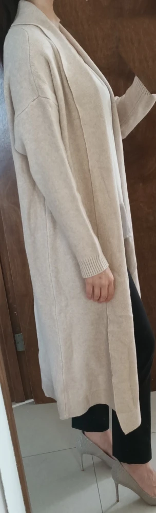 Пришло быстро, очень мягкий и приятный кардиган! Тепленький. Я 165 см рост мне ниже колена. Рукав хотелось бы чуть длиннее, но не критично) носить буду с удовольствием, запаха нет