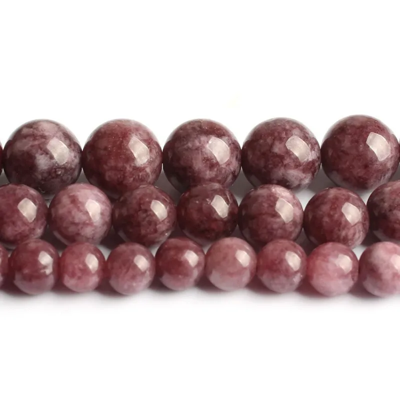 Оптовая продажа, бусины из натурального камня 4/6/8/10/12 мм, фиолетовые круглые бусины из лепидолита для изготовления ювелирных изделий, нить для браслета «сделай сам», ожерелья 15 дюймов