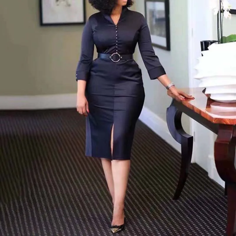 Женское платье-карандаш на пуговицах, с V-образным вырезом и рукавом 34
