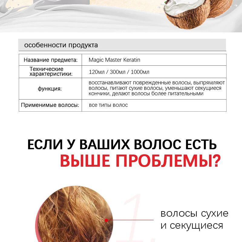 Самый дешевый без формалина 120 мл волшебный мастер кератин с кокосовым пахнущие + 10 мл аргановое масло для выпрямления и гладкий поврежденных волосы