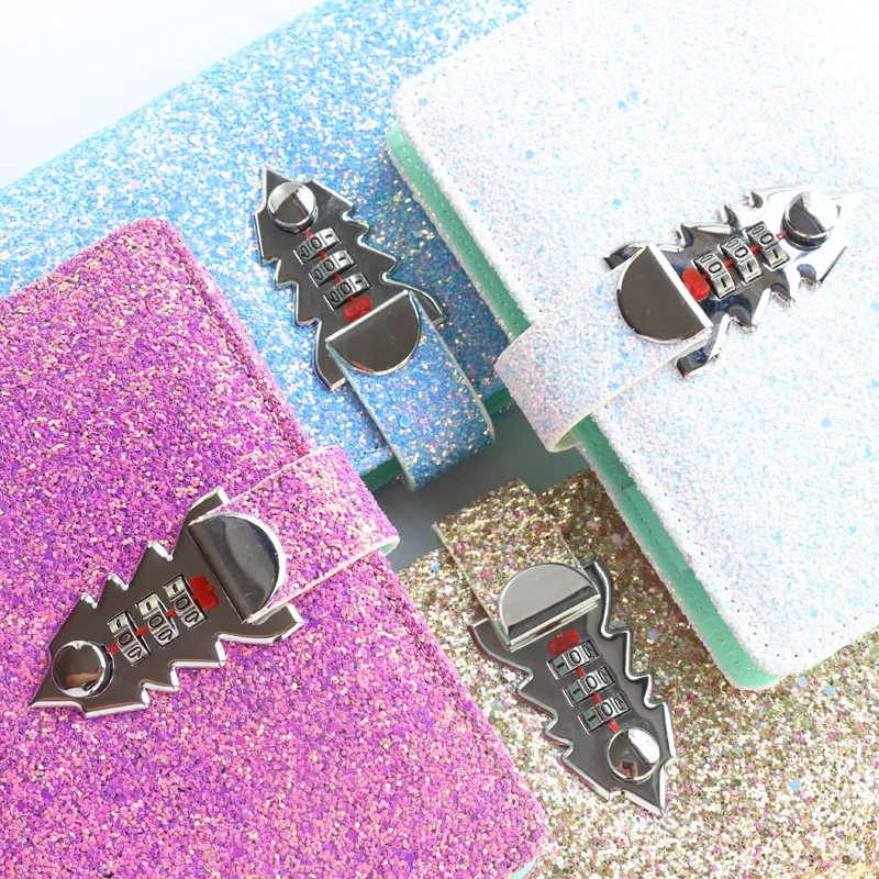 Милый офисный школьный альбом Domikee A6 с блестками, дневник, ежедневник, органайзер, спиральный блокнот с замком, канцелярские принадлежности, подарок