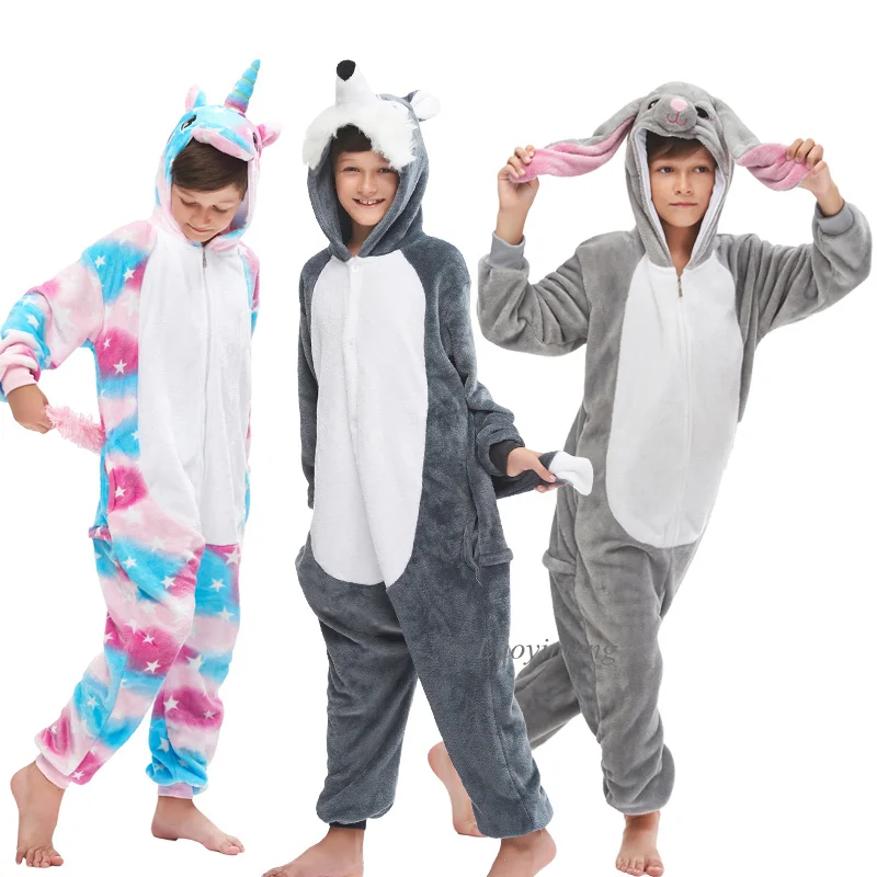Детские пижамы-кигуруми в виде животных, комбинезоны с единорогом, комбинезоны для девочек и мальчиков, Комбинезоны из мультфильма, Детская Пижама, зимнее плотное Флисовое одеяло