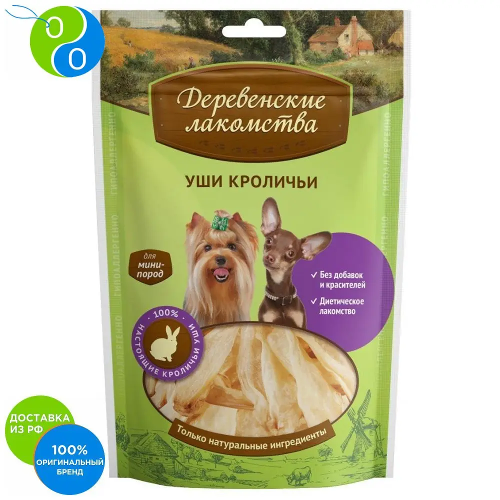 Деревенские лакомства уши кроличьи - лакомство для собак мини пород.