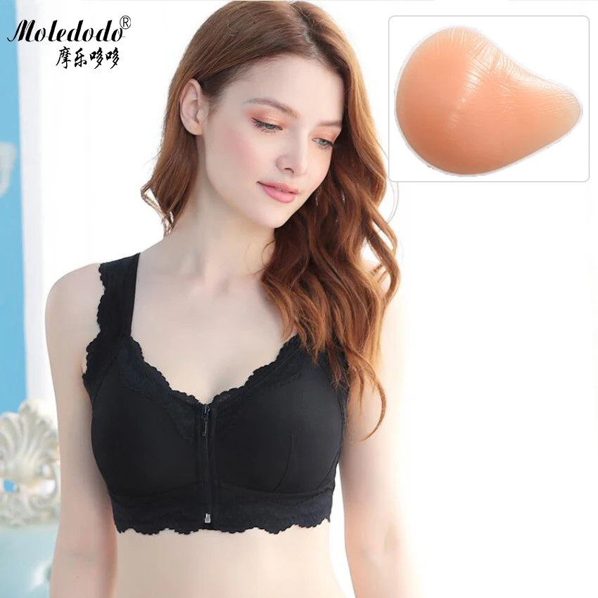 Черные искуственные груди бюстгальтер из хлопка собирать сексуальный передняя молния бюстгальтер 3XL можно вставить спиральная Силиконовые Поддельные грудные формы груди протез