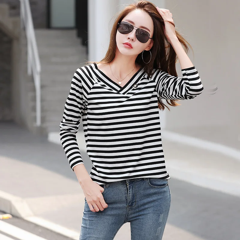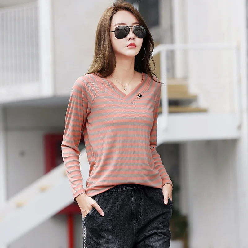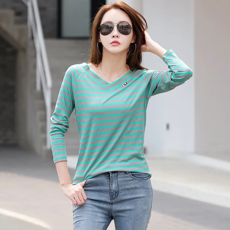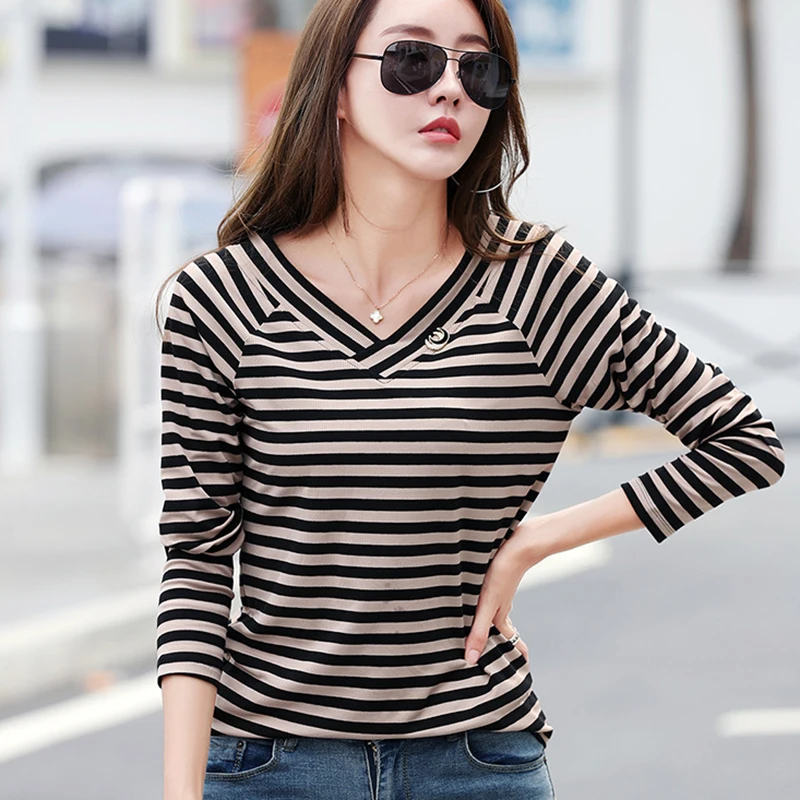 Женская футболка в полоску shintimes, Модная хлопковая футболка с длинным рукавом, осень 2022