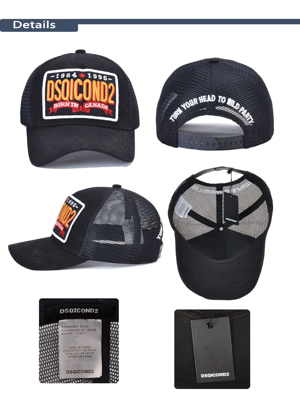 Бейсболка DSQICOND2 для мужчин и женщин, хлопковая Кепка с вышивкой в виде букв иконы, летняя шапка для папы в стиле хип-хоп, Черная