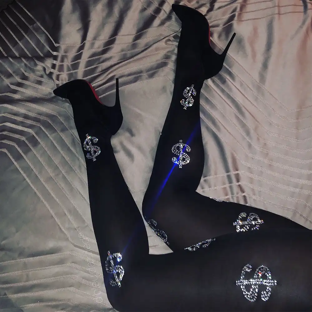 Колготки женские зимние однотонные с геометрическим узором, стразы, блестящие буквы, размера плюс