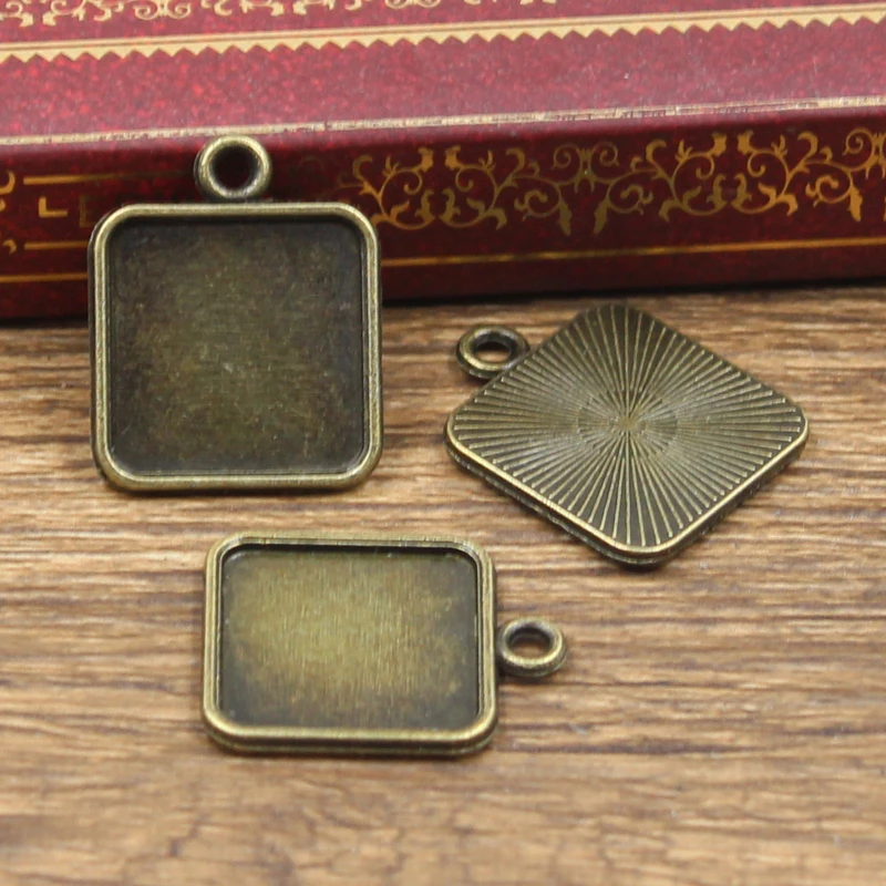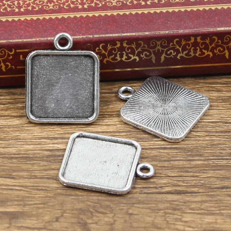 12cs простой квадратный стеклянный кабошон, под античный бронзовый, серебристый цвет, поднос с подвеской для самостоятельного изготовления ювелирных украшений, 15 мм