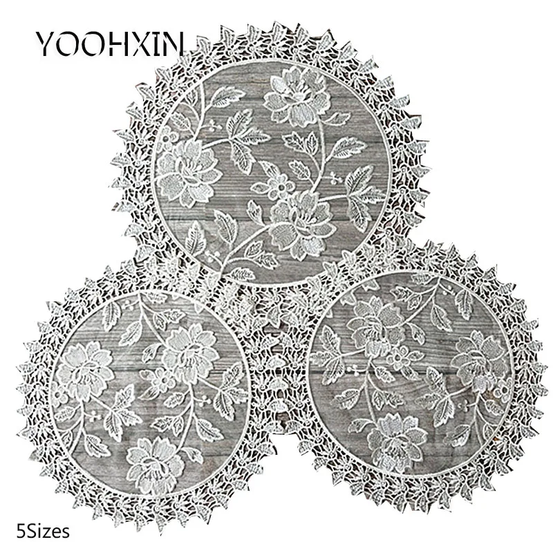 5 размеров; Белое кружевное платье круглый бриллиант вышивка стол место коврик Рождественская подушечка ткань столовых кружка чай блюдо Свадебная подставка под стакан салфетка для кухни