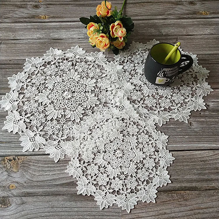 Полностью соответствуют описанию на сайте, из ниток, очень нежные и хорошо смотрятся, брала под вазу и подсвечник.