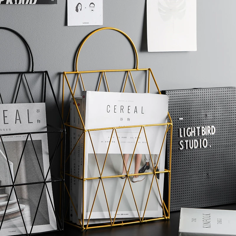 Металлические настенные стеллажи в скандинавском стиле для журналов и книг, креативные настенные декоративные корзины, настольные стеллажи для хранения газет