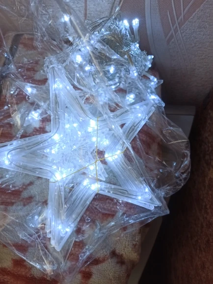 Качество товара отличное. Быстрая доставка (10 дней курьером до двери). Упаковка хорошая, в несколько слоев. В целом всем довольна. У гирлянды разные режимы свечения. Сами звезды большие, светят ярко. Рекомендую!!!