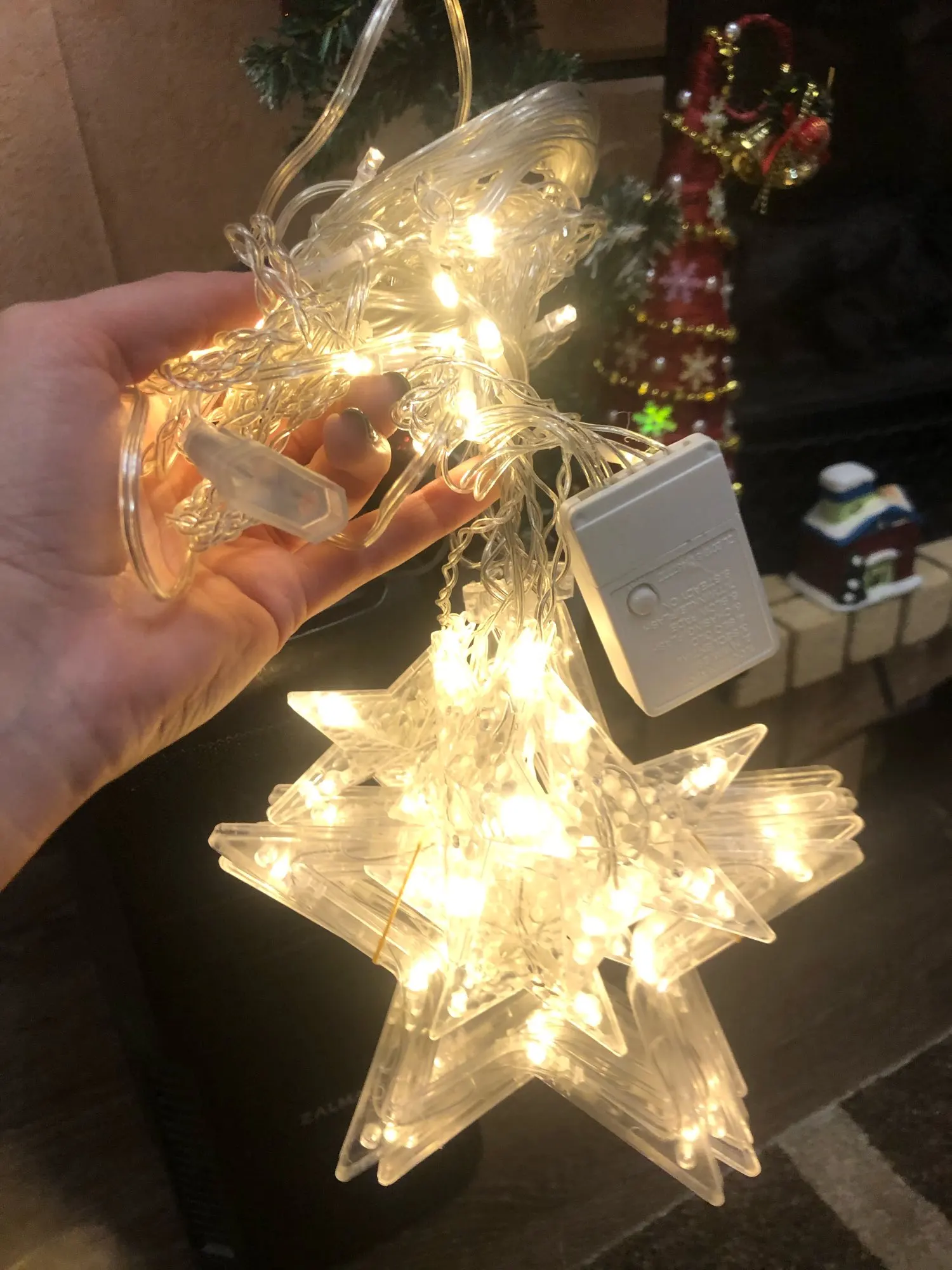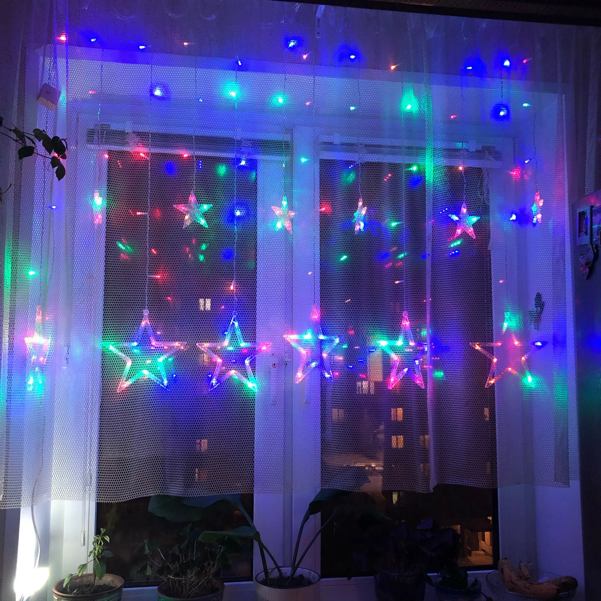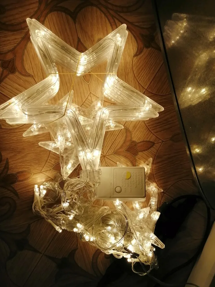 Доставка до спб 19 дней. Звёзды оказались намного больше чем я представляла, но все равно, гирлянда очень красивая. 8 мерцания. Свет- холодный белый. В общем супер! как будто даже мандаринами запахло)))
