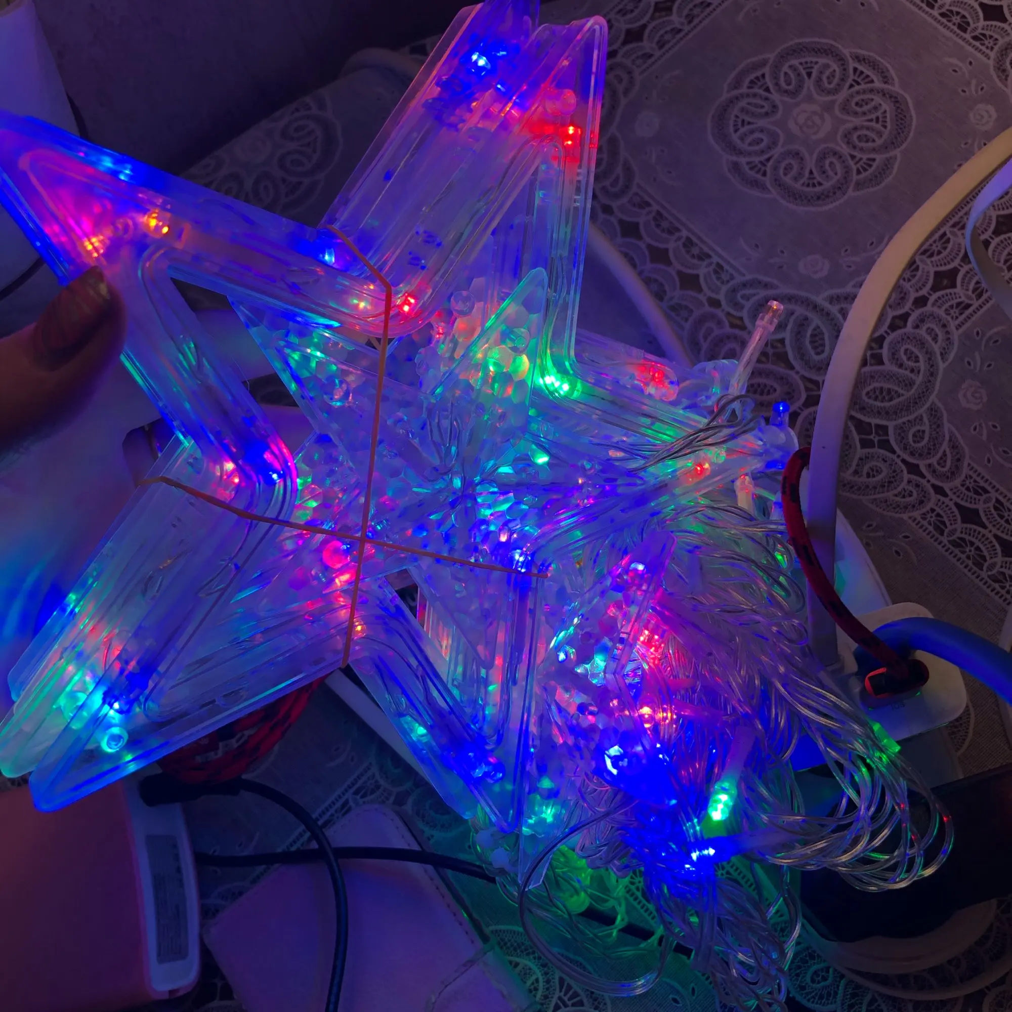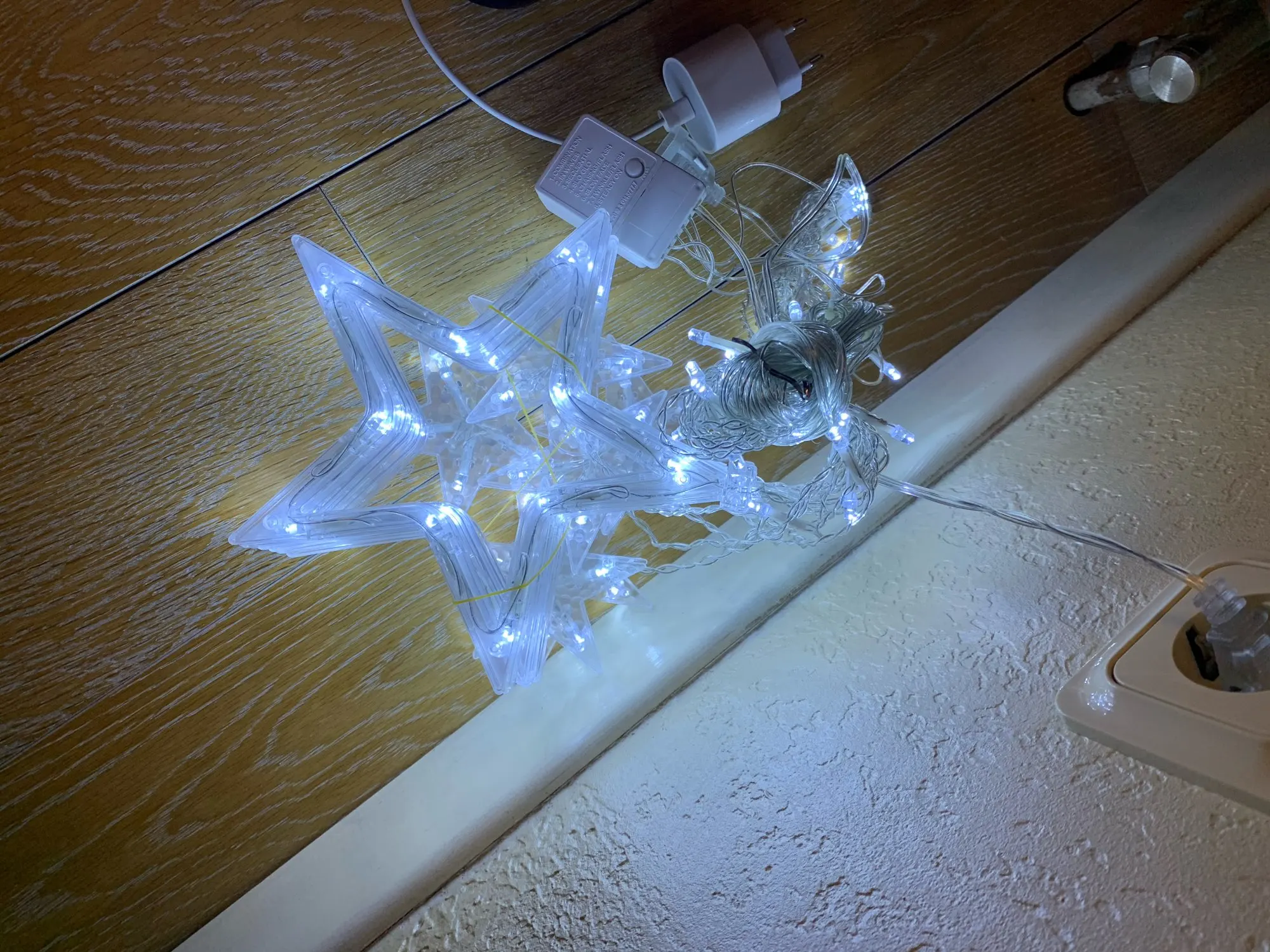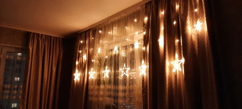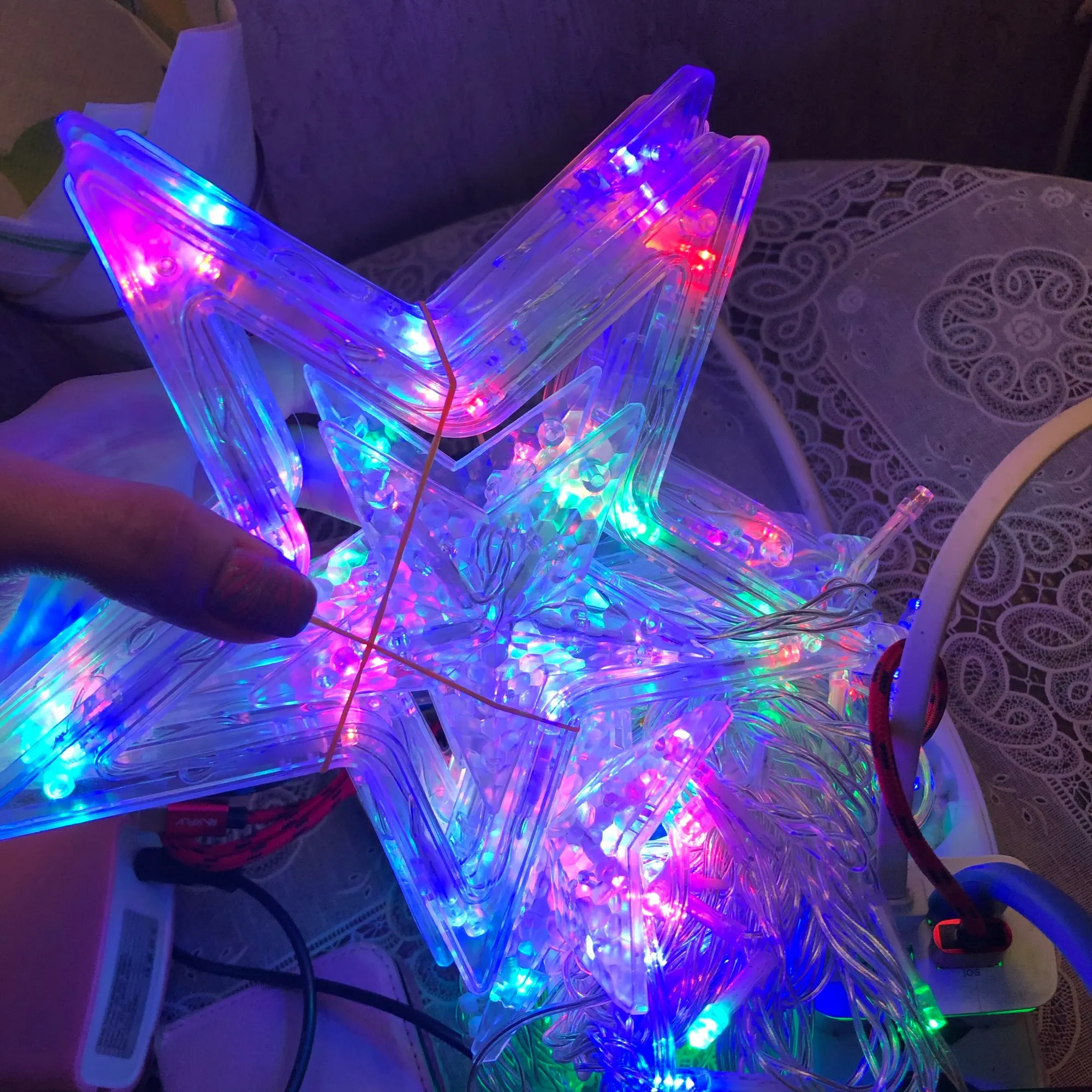 Доставка до спб 19 дней. Звёзды оказались намного больше чем я представляла, но все равно, гирлянда очень красивая. 8 мерцания. Свет- холодный белый. В общем супер! как будто даже мандаринами запахло)))