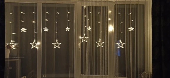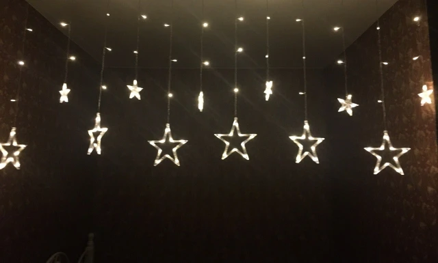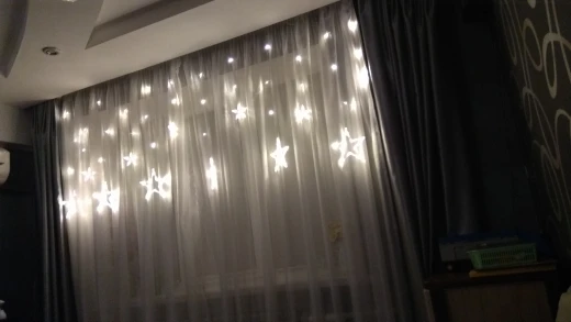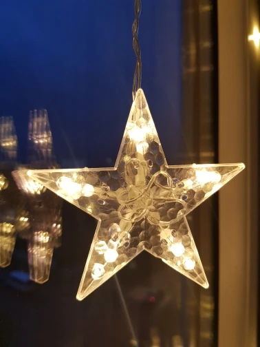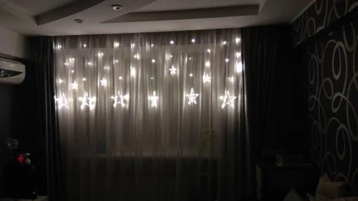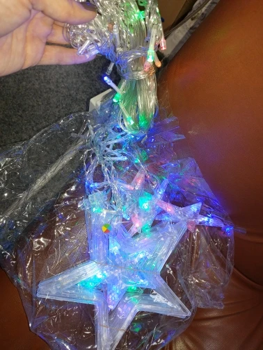 Быстрая доставка. Гирлянда очень хорошего качества. Очень классно смотрится на окне. Звезды крупные и это хорошо. Есть переключение режимов свечения, но мне нравится когда она просто светится ровным жёлтым светом и создаёт настроение. Это моя вторая такая, гирлянда и я хочу купить ещё одну.