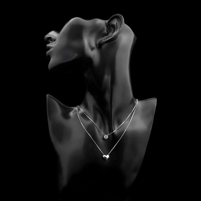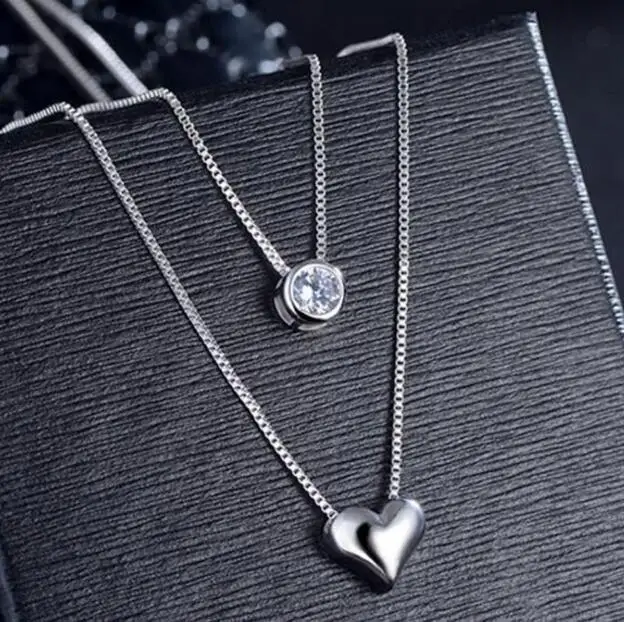 Ювелирные изделия оптом из стерлингового серебра 925 пробы, Двухслойное ожерелье из ключиц, цепочка с кулоном в форме сердца Cz, ожерелье для женщин S-n157