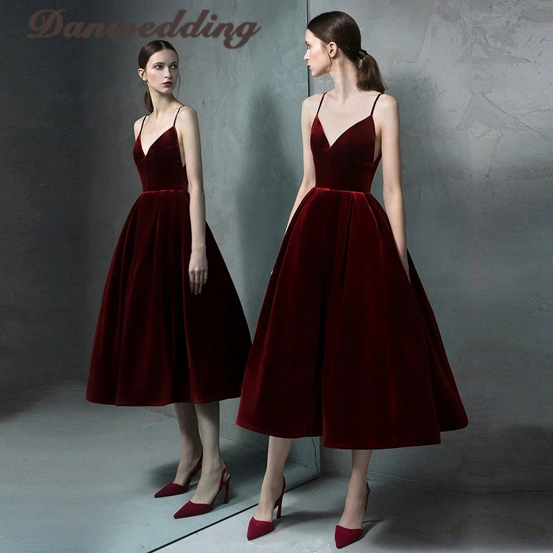 Простое короткое вечернее платье с V-образным вырезом, модель 2019 года, а-силуэт, бархатное вечернее платье для девушек, винтажное тонкое платье для выпускного вечера, новые модели