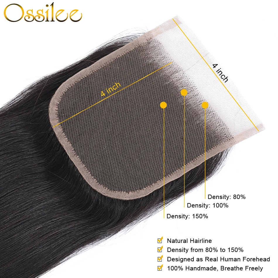 Ossilee волнистые человеческие волосы Remy, 4x4, 8-20 дюймов