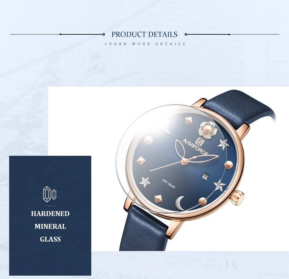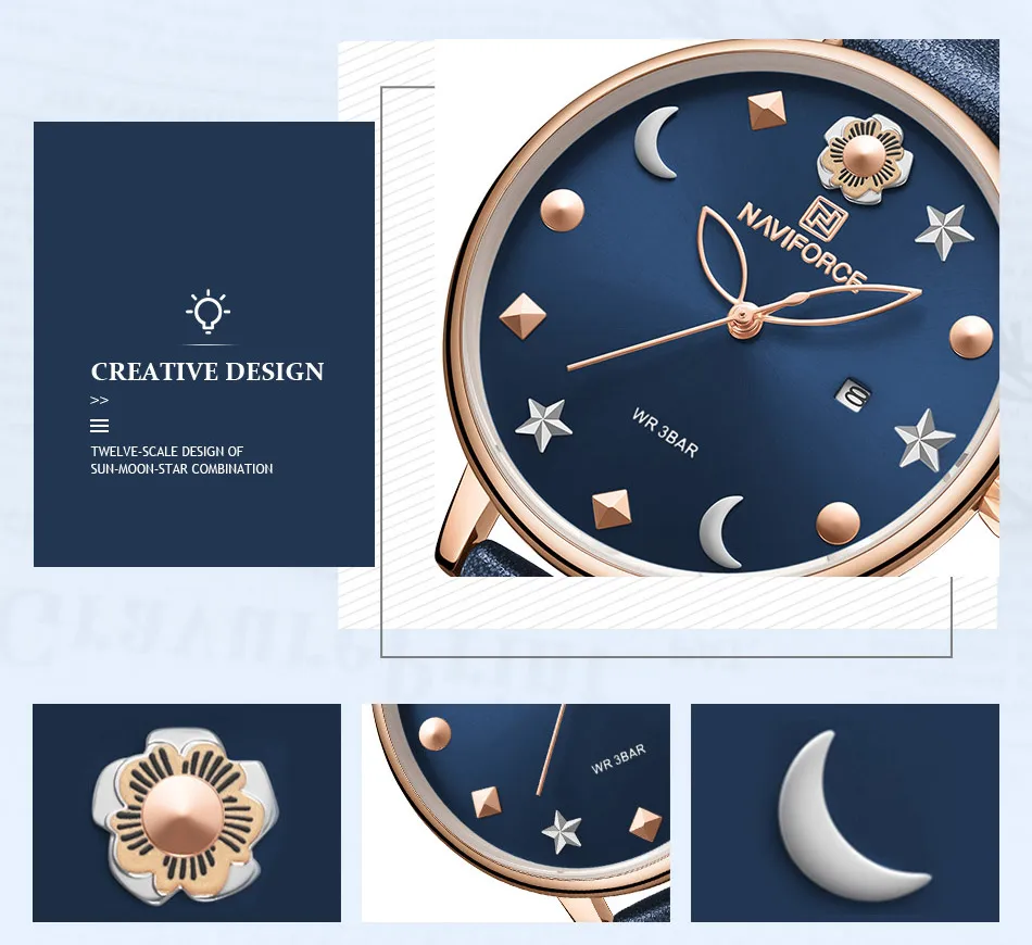 Часы женские кварцевые NAVIFORCE, водонепроницаемые, простые