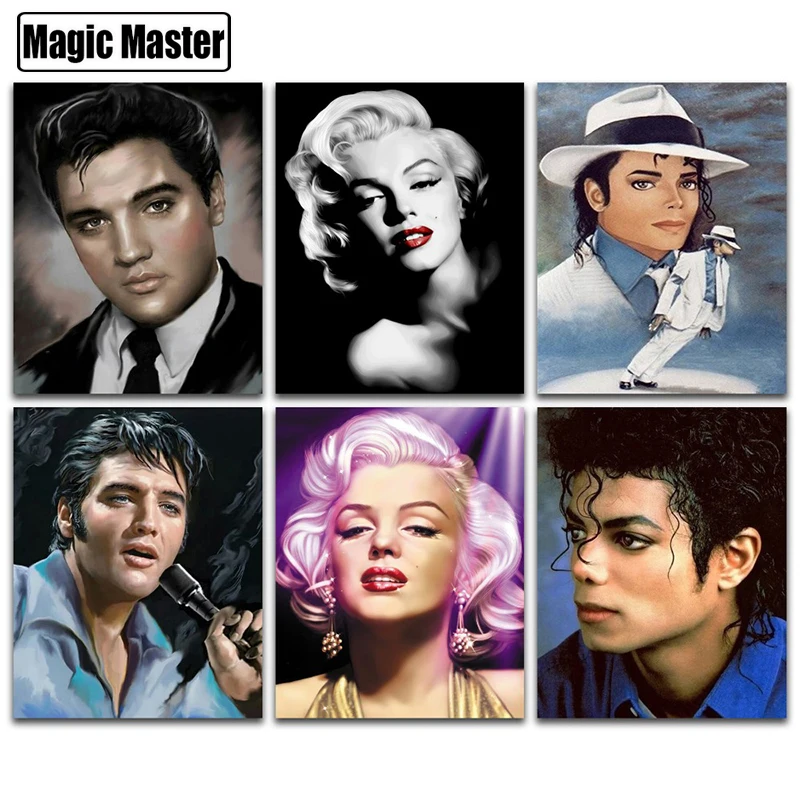 Алмазная картина 5D "сделай сам", квадратнаякруглая картина, Мэрилин Монро, Майкл Джексон, Элвис, 3D вышивка крестиком