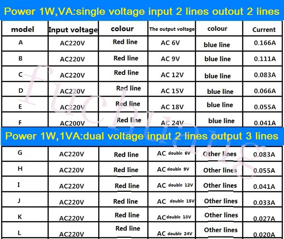 Модель: DB-1VA Мощность: 1 Вт Вход: ac220в ~ 50 Гц Выход: см. Таблицу для получения подробной информации Свинцовый провод: вход и выход 13 см Размер: 29*13*26 мм (длина, ширина и высота) Монтажное отверстие: 72 мм Спецификация: EI28 * 12 Фаза: однофазная изоляция Частота: Частота мощности 50 ~ 60 Гц Материал: сердечник из чистой меди (мощность стопы) Вес: 0,06 кг