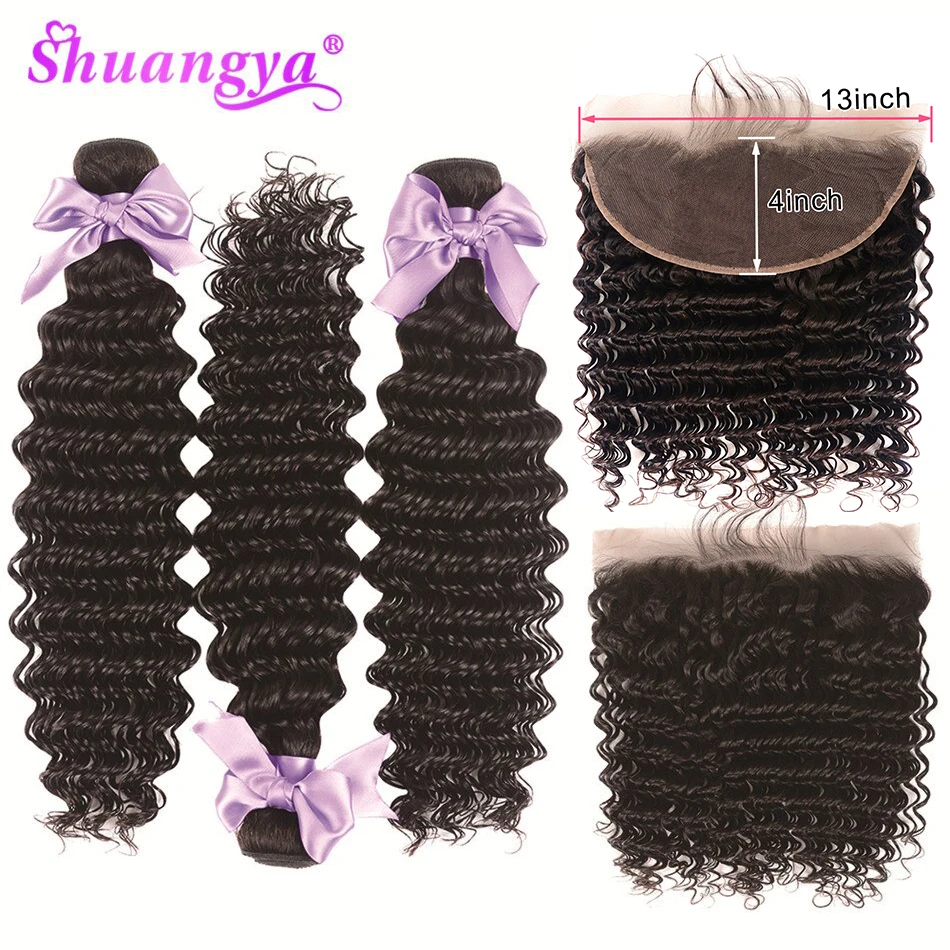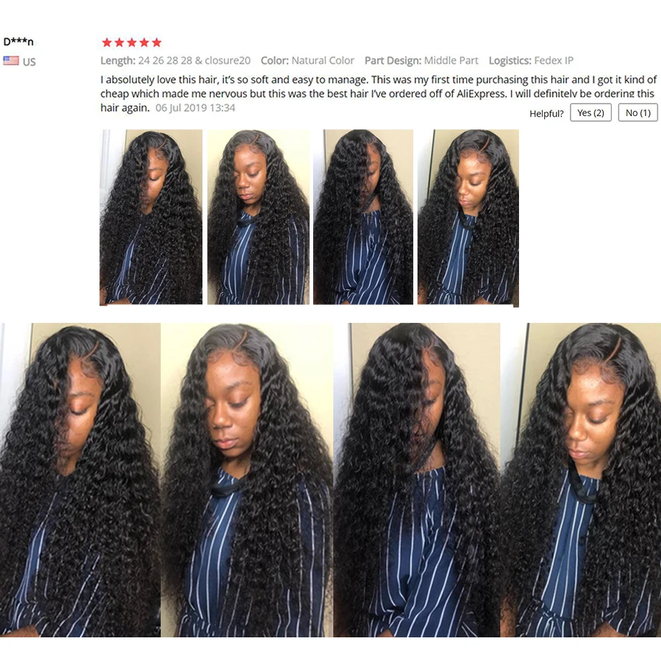 13x4, передняя застежка на сетке с пучками, малазийские волосы, пряди глубоких волн с фронтальной Реми, человеческие волосы спереди с пряди