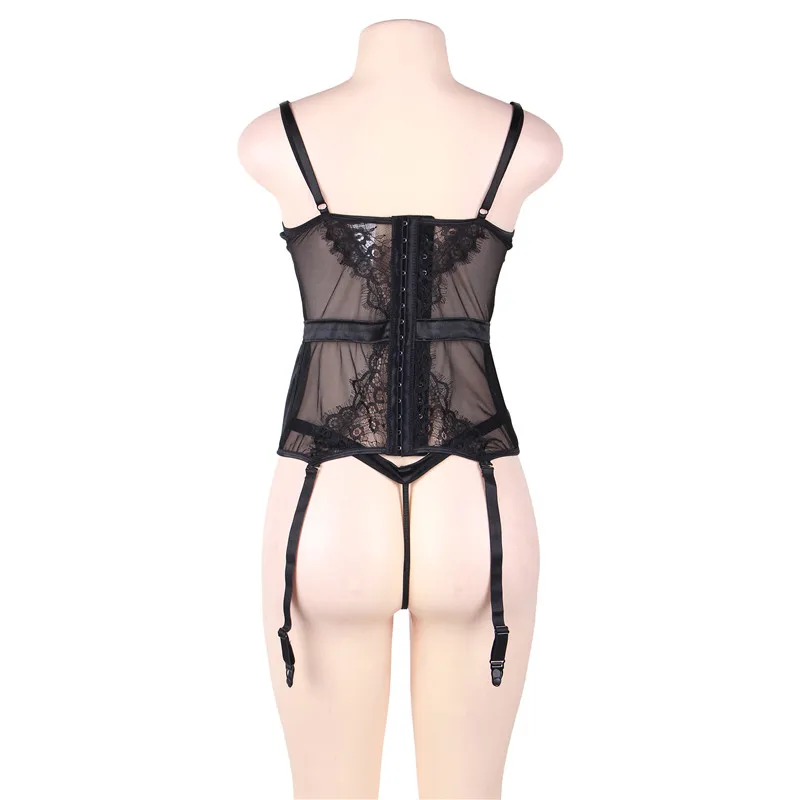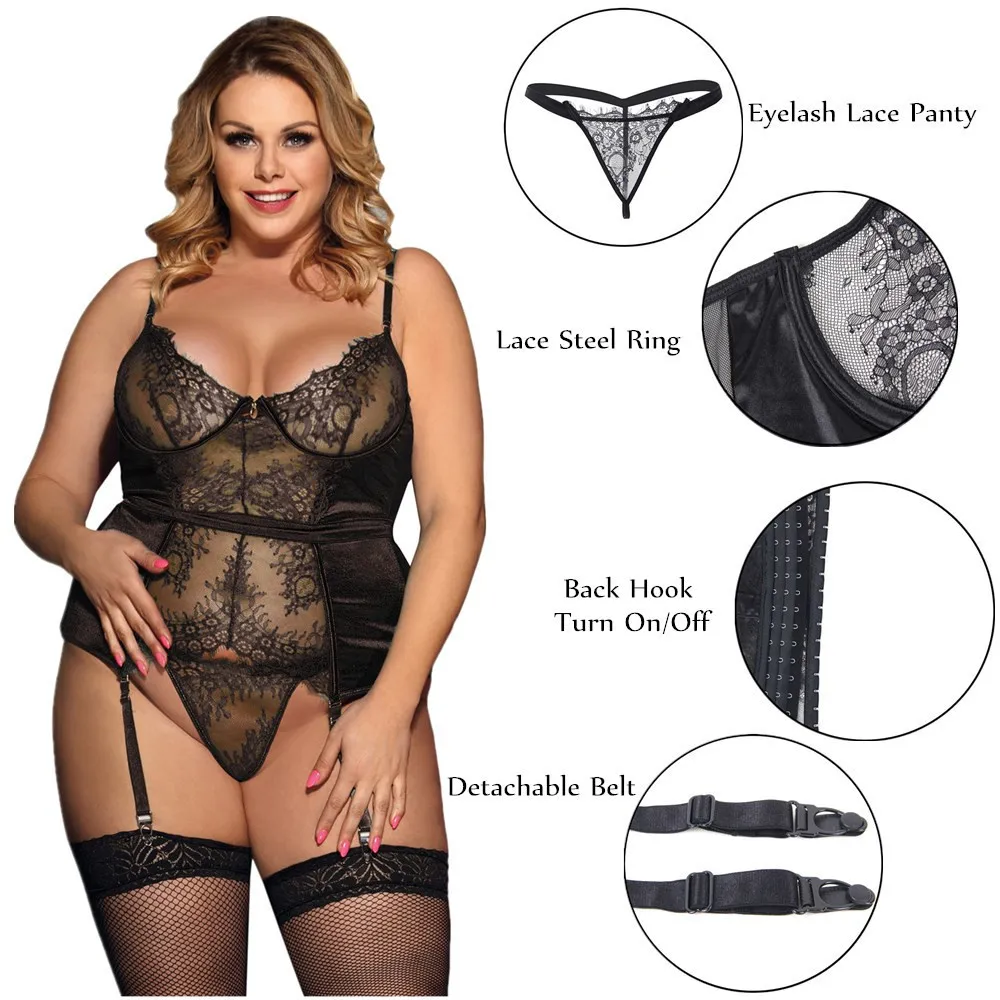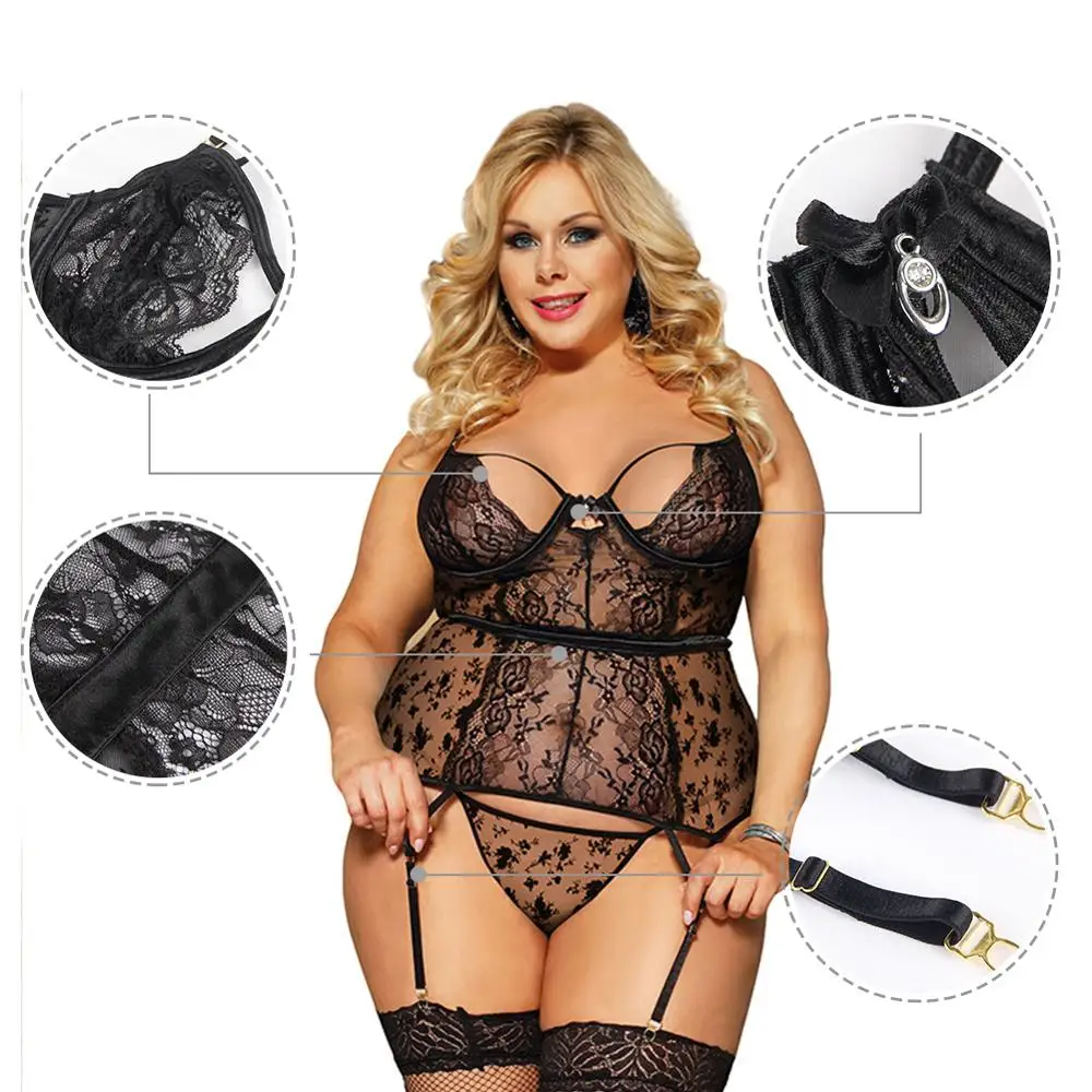Женское кружевное нижнее белье, большие размеры, 5XL, прозрачное, ночная рубашка с подвязками, RS80766