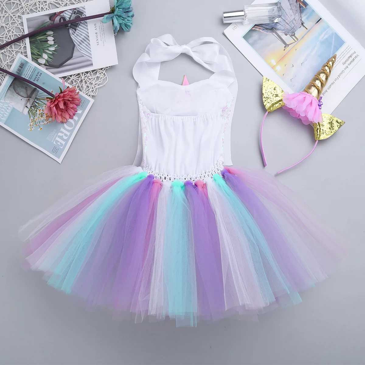 Особенности:Платье изготовлено из полиэстера и сетчатого материала, ручная стирка.Таблица размеров означает возраст для девочек, но только для общего руководства.Регулируемый дизайн с лямкой на шее. Топ с лифом спереди украшен блестящими блестками, объемными цветами и аппликацией в виде мультяшных животных с подкладкой.Эластичная спинка. 1 многослойная разноцветная сетчатая юбка-пачка прикрепляется к талии. Поставляется с подходящим обручем для волос и крыльями. Очаровательный и милый комплект для вашей девочки.Подходит для Хэллоуина, косплея, вечерние темы, ролевых игр, нарядов, фотографий, праздников и т. д.