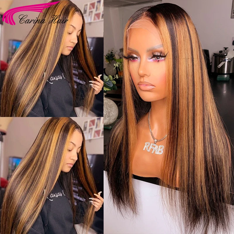 Ombre Highlight объемная волна/прямой парик медовый блонд Ombre Highlight кружевные передние парики Полный 360 кружевной передний парик al 180% Remy кружевной парик
