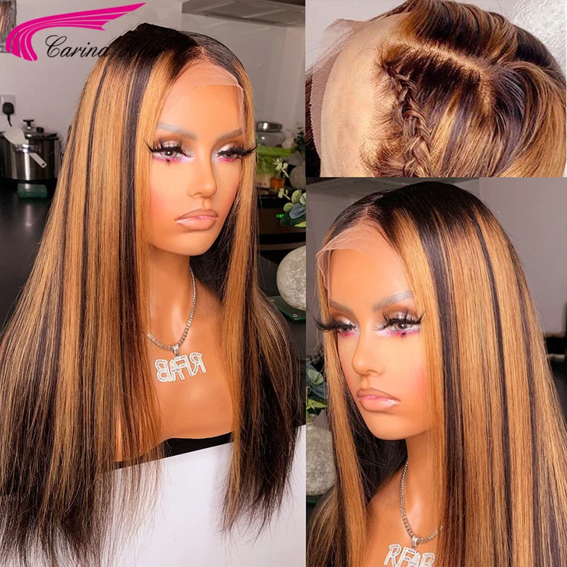 Прямой фронтальный парик Honey блонд, прозрачные кружевные парики, ...