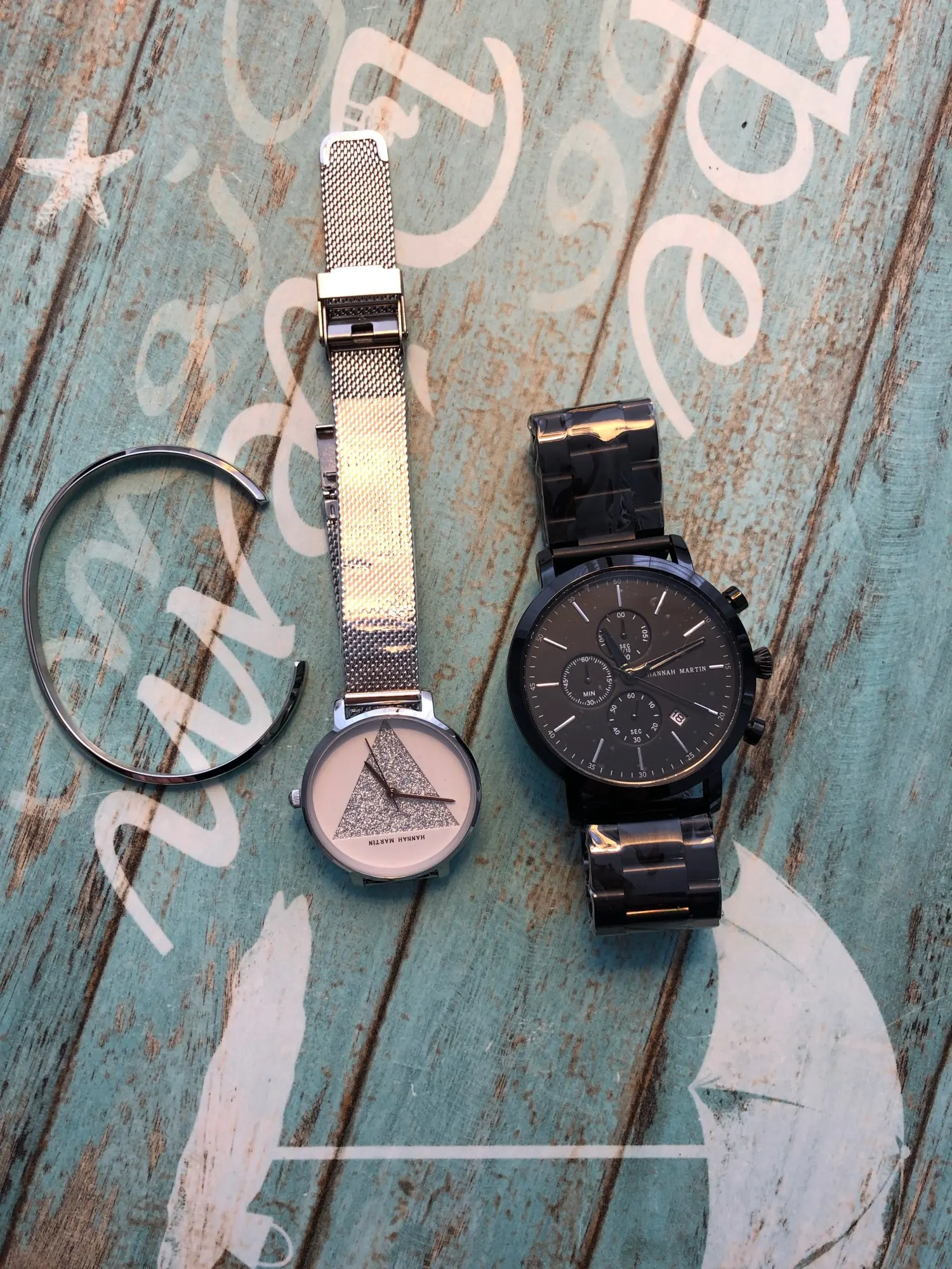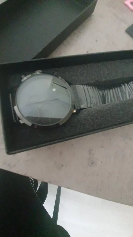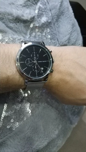Часы получены так же, как рекламируются. Довольно тяжелый. Чехол кажется действительно красивым. Я купил 2 вещи в день дамы. Они мы отправляем в одном и том же pkg, действительно хорошие. Бразилька немного потеряна. Хронограф работает нормально. Есть только одна вещь, первый циферблат chrono не полностью выровнен/прямой, как и другие. Независимо от того, работает просто хорошо, когда кнопки chrono нажимаются.