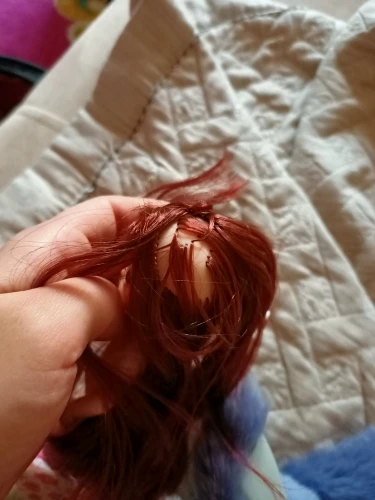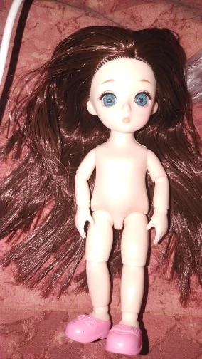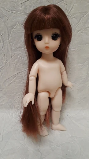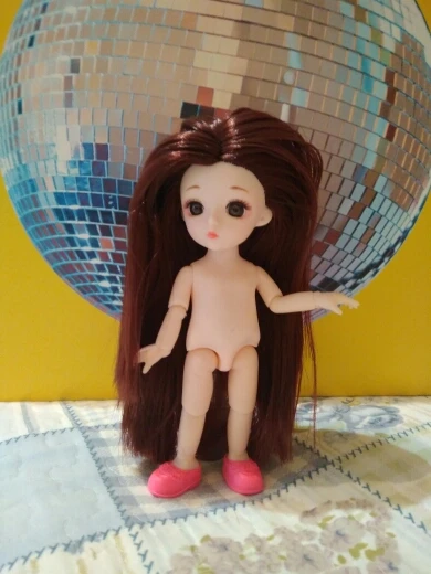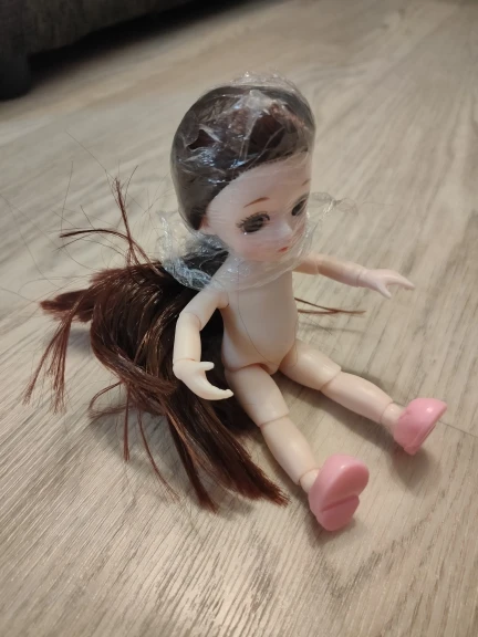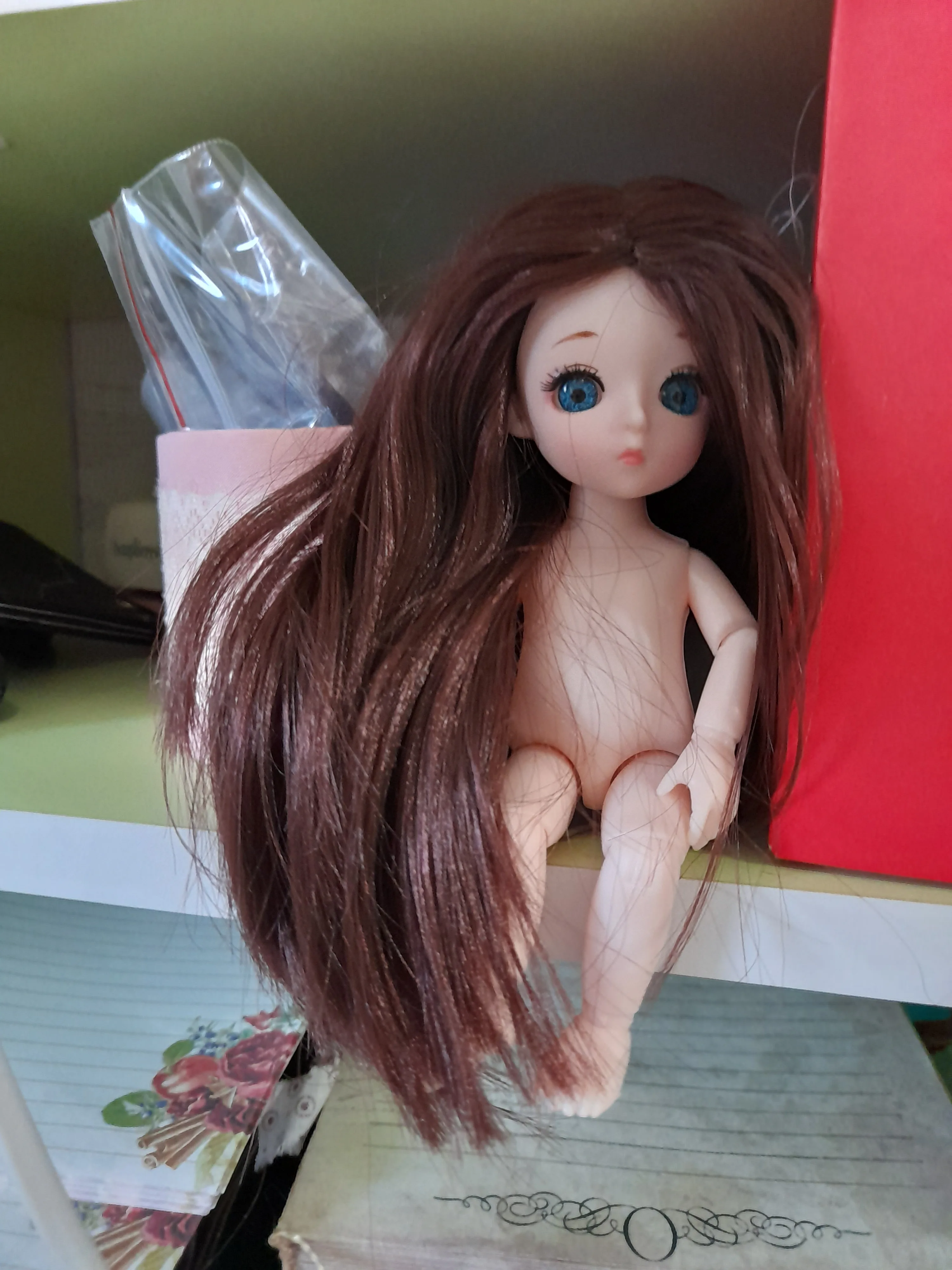 Очень милая куколка. Помыли ей волосы, они так ещё пышнее. Теперь заказали на неё одежду. Будем ждать)