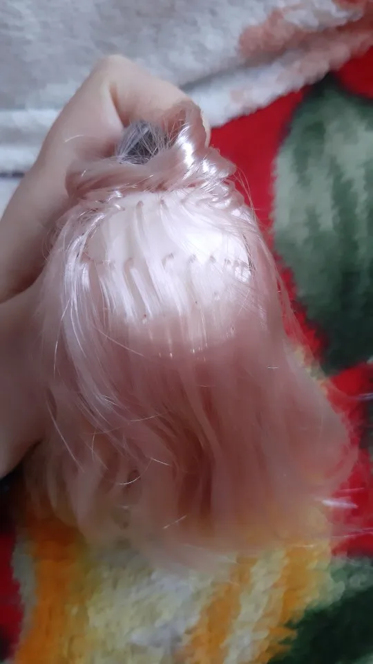 Очень милая куколка! Цвет волос больше на розовый жемчужный похож, прошивка сверху густая, внутри волос поменьше. Упакована в почтовый пакет с пупыркой, заказывала с этой куклой ещё одну(тоже мелкую, но с другим личиком и тапками в наборе), продавец положил в комплект ещё тапочки. До РБ доставка месяц.